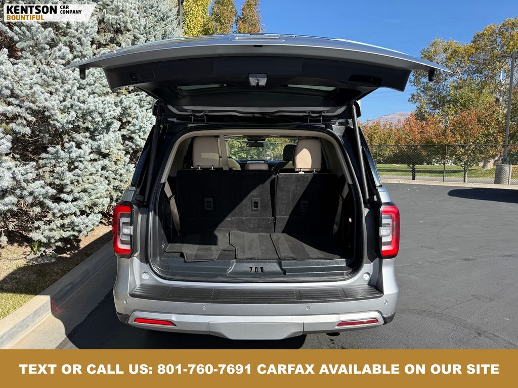 Equipment Group 301A Mid Package (Panoramic Vista Roof), 4WD, 12 Speakers, 3.31 Axle Ratio, 3rd row seats: split-bench, 4-Wheel Disc Brakes, ABS brakes, Adjustable pedals, Air Conditioning, Alloy wheels, AM/FM radio: SiriusXM with 360L, Auto High-beam Headlights, Auto-dimming door mirrors, Auto-dimming Rear-View mirror, Automatic temperature control, Brake assist, Bumpers: body-color, Compass, Delay-off headlights, Driver door bin, Driver vanity mirror, Dual front impact airbags, Dual front side impact airbags, Electronic Stability Control, Emergency communication system: SYNC 4 911 Assist, Exterior Parking Camera Rear, Four wheel independent suspension, Front anti-roll bar, Front Bucket Seats, Front Center Armrest, Front dual zone A/C, Front fog lights, Front License Plate Bracket, Front reading lights, Fully automatic headlights, Garage door transmitter, Heated & Ventilated Leather Front Captain's Chairs, Heated door mirrors, Heated front seats, Heated rear seats, Heated steering wheel, Illuminated entry, Leather steering wheel, Low tire pressure warning, Memory seat, Navigation system: Connected Navigation, Occupant sensing airbag, Outside temperature display, Overhead airbag, Overhead console, Panic alarm, Passenger door bin, Passenger vanity mirror, Pedal memory, Power door mirrors, Power driver seat, Power Liftgate, Power moonroof, Power passenger seat, Power steering, Power windows, Radio data system, Radio: B&O Sound System by Bang & Olufsen, Rain sensing wipers, Rear air conditioning, Rear anti-roll bar, Rear reading lights, Rear window defroster, Rear window wiper, Reclining 3rd row seat, Remote keyless entry, Security system, SiriusXM w/360L, Speed control, Speed-sensing steering, Speed-Sensitive Wipers, Split folding rear seat, Spoiler, Steering wheel memory, Steering wheel mounted audio controls, SYNC 4 w/Enhanced Voice Recognition, Tachometer, Telescoping steering wheel, Tilt steering wheel, Traction control, Trip computer, Turn signal indicator mirrors, Variably intermittent wipers, Ventilated front seats, Voltmeter, and Wheels: 20'' Bright Machined Aluminum.