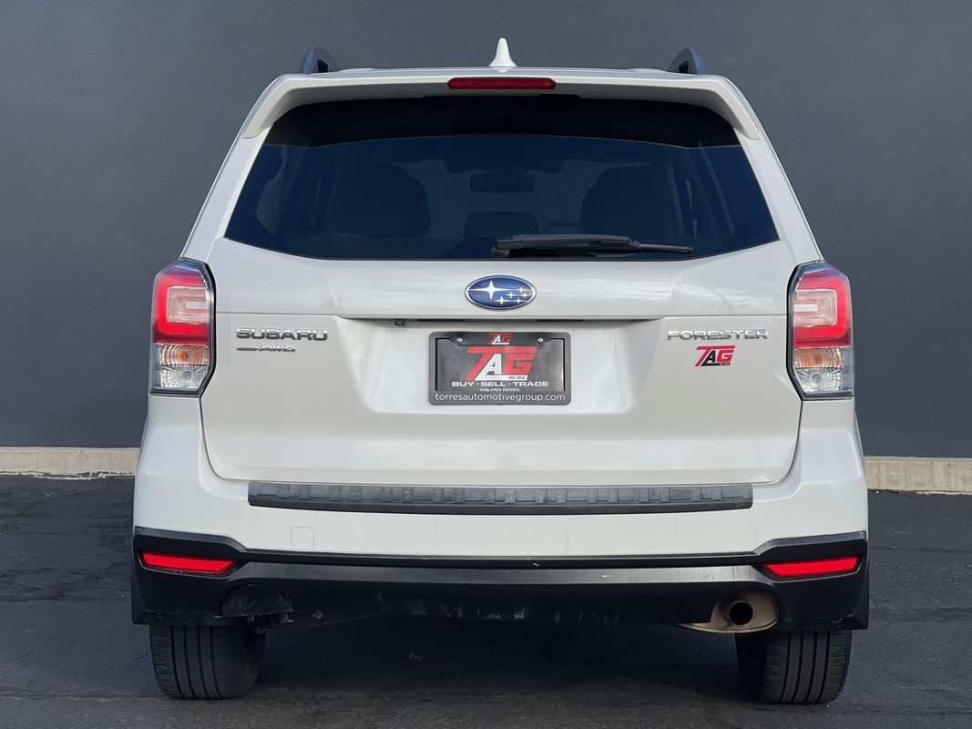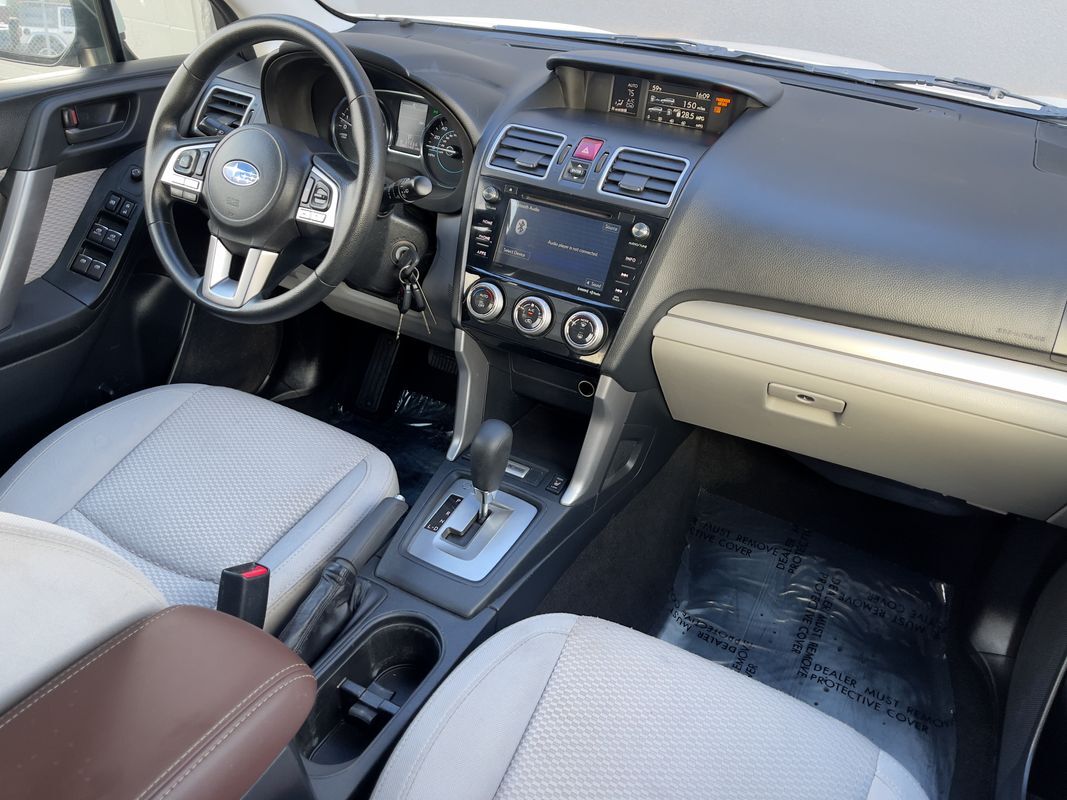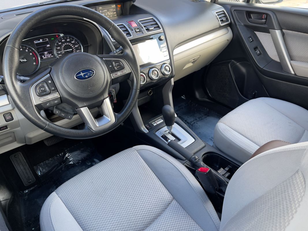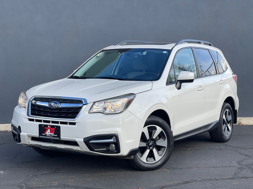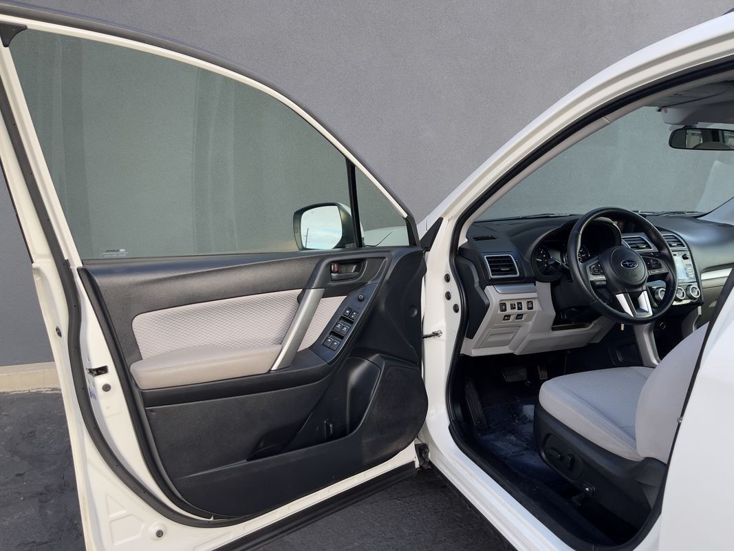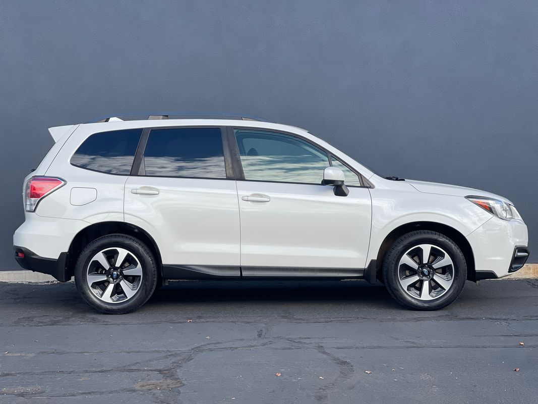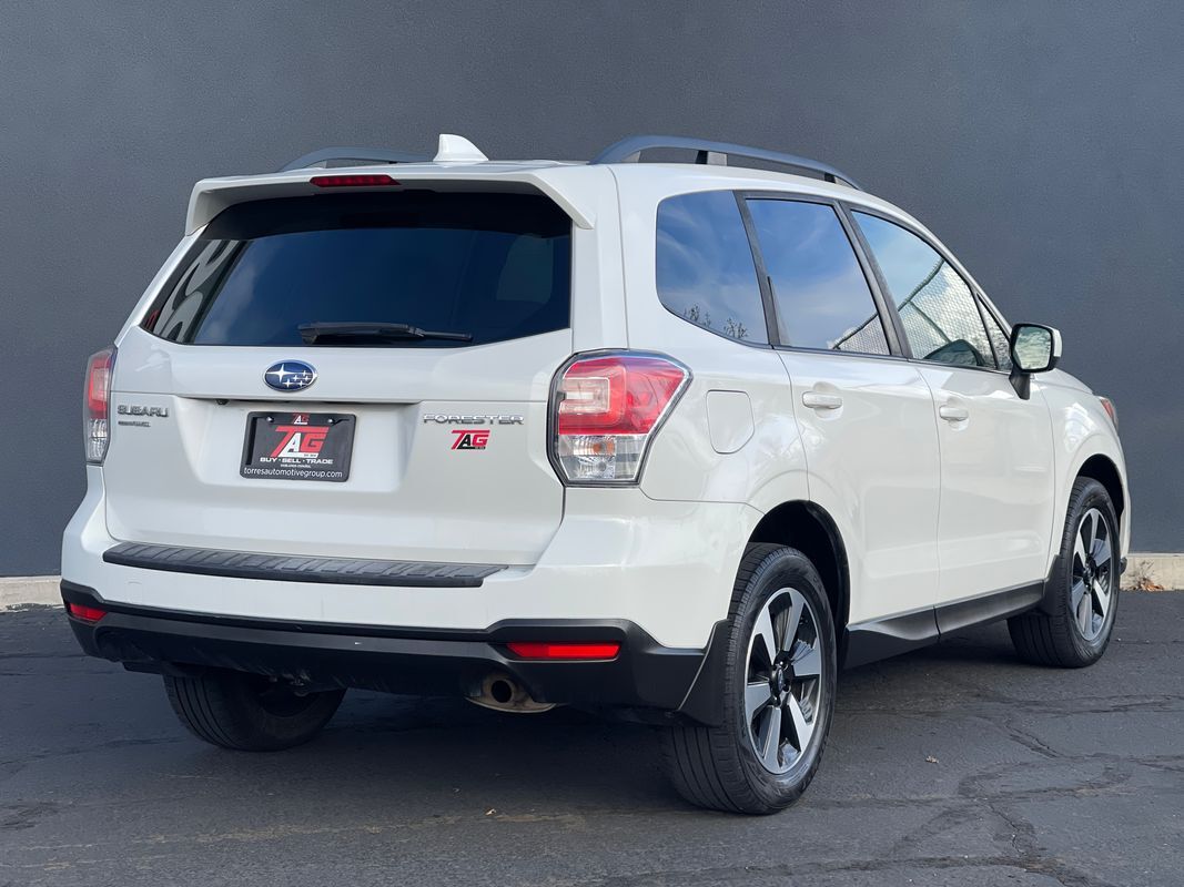 The 2018 Subaru Forester 2.5i Premium CVT in Crystal White Pearl is a perfect blend of functionality and style- ready to tackle any adventure with its robust All-Wheel Drive system. Powered by a 2.5L 4-cylinder engine- this SUV delivers a commendable balance of power and fuel efficiency- making it ideal for both city commutes and off-road excursions. The exterior is accentuated by the sleek lines and bold stance- complete with splash guards and a rear bumper cover for added protection and style.