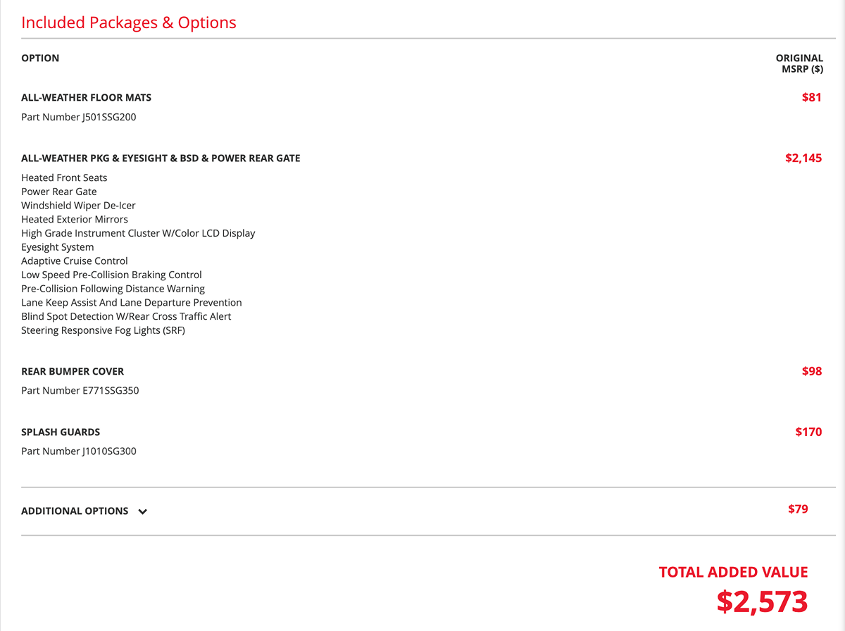 All-Weather Pkg & Eyesight & Bsd & Power Rear Gate