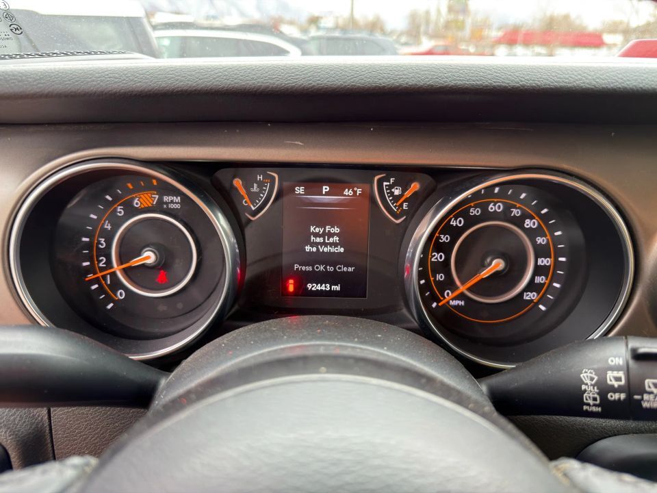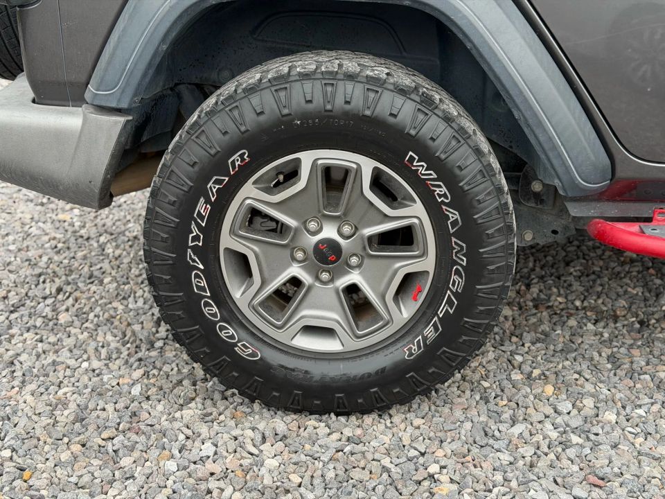 Clean Title - 2.0L Turbocharged 4-Cylinder Engine - 8-Speed Automatic Transmission - Command-Trac Part-Time 4WD System - Dana 3rd Generation Solid Rear Axle - Hill Descent Control - Electronic Stability Control - 17-Inch Tech Silver Aluminum Wheels - Black Freedom 3-Piece Hard Top - Power Windows and Door Locks - Heated Power Mirrors - Leather-Wrapped Steering Wheel - Uconnect 3 with 5-Inch Display - Bluetooth with Voice Command - Media Hub with USB and AUX Ports - Fog Lamps - Tow Hooks (Front and Rear) - Deep Tint Sunscreen Windows - Keyless Entry and Push-Start System