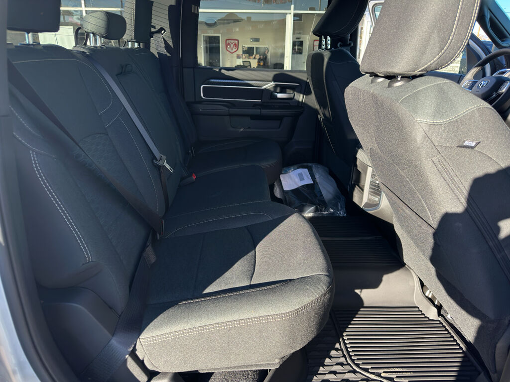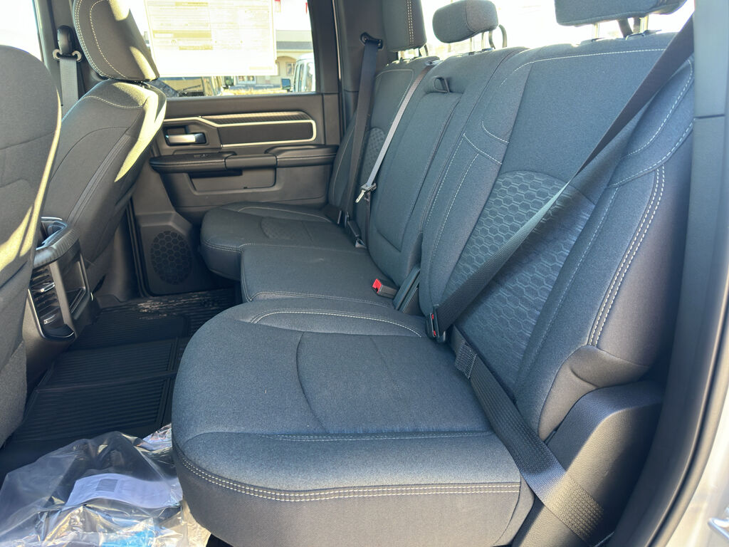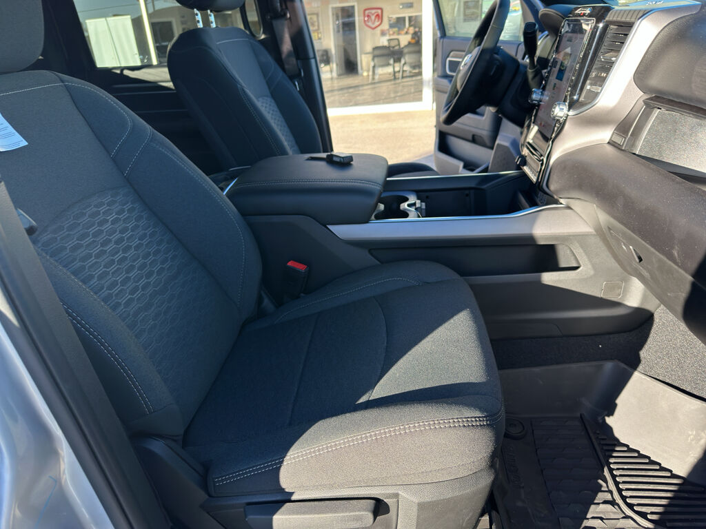 Quick Order Package 24Z Big Horn,Cold Weather Group: Engine Block Heater; MOPAR Winter Front Grille Cover,Night Edition: Firestone Brand Tires; Gloss Black Nostrils/mic Black Grille; LT285/60R20E OWL On/off Road Tires; Black Exterior Truck Badging; 20" X 8.0" Black Painted Aluminum Wheels; Body Color Grille-Surround; Black Interior Accents; Black Wheel Center Hub; Painted Front Bumper; Painted Rear Bumper,Big Horn Level 1 Plus Equipment Group: Google Android Auto; SiriusXM Radio Service; For Details, Visit DriveUconnect.com; For More Info, Call 800-643-2112; Integrated Voice Command with Bluetooth; Emergency Vehicle Alert System (EVAS); 12" Touchscreen Display; Glove Box Lamp; Auto Power-Folding Mirrors; Footwell Courtesy Lamp; Anti-Spin Differential Rear Axle; Mirror Running Lights; MOPAR Deployable Bed Step; Alexa Built-In; Apple CarPlay; Power-Adjustable Convex Aux Mirrors; Forward and Reverse Utility Lights; Locking Lower Glove Box; Remote Start System; 9 Alpine Speakers with Subwoofer; Disassociated Touchscreen Display; Dual Glove Boxes; 2nd Row in Floor Storage Bins; Rear View Auto Dim Mirror; Rear Dome with On/off Switch Lamp; LED Bed Lighting; Connectivity - US/Canada; GPS Navigation; 4G LTE Wi-Fi Hot Spot; GPS Antenna Input; Exterior Mirrors with Heating Element; SiriusXM with 360L; Global Telematics Box Module; Connected Travel and Traffic Services; Foam Bottle Insert (door Trim Panel); Black Exterior Mirrors; Big Horn Instrument Panel Badge; Off-Road Info Pages; Selectable Tire Fill Alert; Trailer Tow Pages; HD Radio; Uconnect 5 Navigation with 12.0" Display Radio; Power Heated Folding Telescopic Mirrors; Exterior Mirrors with Supplemental Signals; Steering Wheel Mounted Audio Controls; Exterior Mirrors Courtesy Lamps; Air Conditioning ATC with Dual Zone Control; MOPAR Spray in Bedliner; Power Adjust Mirrors; Luxury Steering Wheel; Power Telescoping Mirrors,Heated Seats and Wheel Group: Heated Front Seats; Heated Steering Wheel,Quick Order Package 2UZ Big Horn,5th Wheel/gooseneck Towing Prep Group,Anti-Spin Differential Rear Axle,Premium Cloth Bucket Seats,Remote Start System,Silver Zynith,Instrument Panel Mounted Auxiliary Switches,MOPAR Front and Rear Rubber Floor Mats,Power 2-Way Driver Lumbar Adjust,Clearance Lamps,Forward Collision Warning-Plus,Integrated navigation system with voice activation,Keyfob remote start,Heated steering wheel,Uconnect w/Bluetooth handsfree wireless device connectivity,Apple CarPlay/Android Auto smart device wireless mirroring,Heated driver and front passenger seats,MOPAR retractable rear step,Premium cloth front seat upholstery,Driver seat with 8-way directional controls,Front passenger seat with 4-way directional controls,12 inch primary display,Pedestrian/Cyclist Emergency Braking,4G LTE Wi-Fi Hot Spot mobile hotspot internet access,ParkView rear mounted camera,Adaptive cruise control with stop and go,Brake assist system,Cruise control with steering wheel mounted controls,Primary monitor touchscreen,Part-time 4WD,Cummins High Output 6.7L I-6 diesel direct injection, VVT intercooled turbo, diesel, engine with 430HP,Cummins High Output 6.7L I-6,Alexa Built-In built-in virtual assistant,Smart device remote start,Push-button,Wireless audio streaming,Following distance alert,Smart key with push button start,Trailer light test,Dual-zone front climate control,Sentry Key immobilizer,RAM Connect vehicle tracker,Alpine speakers,Active noise cancellation,Connected Travel & Traffic Services real-time traffic,RAM Connect vehicle integrated emergency SOS system,Trailer brake controller,Trailer sway control,Uconnect external memory control,Internet radio capability,5 USB ports,Power extendable trailer mirrors,Electronic stability control system with anti-roll,Hill start assist,Automatic climate control,Rear Seat Reminder Alert rear seat check warning,ParkSense front and rear parking sensors,3 12V power outlets,LED front fog lights,Active grille shutters