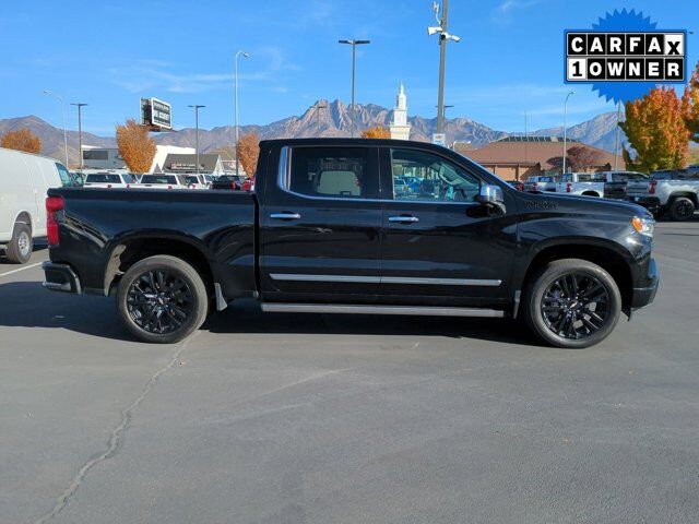 *2023 Chevrolet Silverado 1500 High Country -- One Owner, GM Certified!*VIN: 1GCUDJEL4PZ192026Experience premium power and sophistication with this Black 2023 Chevrolet Silverado 1500 High Country Crew Cab. This one-owner, GM Certified truck has been meticulously maintained and comes with only 56,000 miles, ensuring top-notch performance and reliability for years to come.Equipped with a 6.2L V8 OHV 16V gasoline engine, this Silverado delivers unmatched strength, smooth acceleration, and outstanding towing capability. The 4x4 drivetrain with rear-wheel assist provides excellent traction and control, whether you're hauling, towing, or taking on tough terrain.Inside, the High Country trim defines luxury with premium leather seating, advanced driver-assist technologies, and a state-of-the-art infotainment system. Every detail---from the chrome accents to the quiet, refined cabin---reflects Chevrolet's highest standard of craftsmanship.? Key Features: * 6.2L V8 Gasoline Engine * 4x4 / Rear-Wheel Drive Capability * Crew Cab Configuration * One Owner, GM Certified * 56,000 Miles * High Country Trim -- Top-of-the-Line Luxury & Comfort * Premium Leather Interior & Advanced TechnologyThis 2023 Silverado 1500 High Country combines rugged performance with refined luxury---perfect for drivers who demand the best of both worlds.Delivers 20 Highway MPG and 16 City MPG! This Chevrolet Silverado 1500 delivers a Gas V8 6.2L/376 engine powering this Automatic transmission. WHEELS, 22 TRANSIT STEEL WHEELS FOR LPO 22 WHEELS AND TIRES, TRANSMISSION, 10-SPEED AUTOMATIC with Electronic Transmission Range Selector, (ETRS), electronically controlled with overdrive, tow/haul mode and steering column paddle shifters. Includes Cruise Grade Braking and Powertrain Grade Braking (STD), TIRES, 275/50R22SL ALL-SEASON, BLACKWALL.*This Chevrolet Silverado 1500 Comes Equipped with These Options *TECHNOLOGY PACKAGE includes (DRZ) Rear Camera Mirror and (UV6) 15 Diagonal Head-Up Display (Includes (KSG) Adaptive Cruise Control and (UGN) Enhanced Automatic Emergency Braking. Includes (UGN) Enhanced automatic Emergency Braking on vehicles built prior to 6-13-2022. Vehicles built on or after 6-13-2022 will include (UHY) Automatic Emergency Braking.), SUSPENSION PACKAGE, ADAPTIVE RIDE CONTROL, LPO, DARK ESSENTIALS PACKAGE includes (RIK) Black Silverado nameplates, along with where applicable, Black Custom/LT/RST/LTZ/High Country/Z71/6.2L/Duramax badges, LPO, (SFZ) Black bowtie, LPO and (SB7) Black tailgate CHEVROLET lettering, LPO, (dealer-installed), HIGH COUNTRY PREMIUM PACKAGE includes (CF5) power sunroof, (RPT) 22 painted aluminum wheels with Chrome inserts, (XCE) 275/50R22SL all-season, blackwall tires and (RIA) floor liner, LPO , SUNROOF, POWER on Crew Cab models, SEATS, FRONT BUCKET with center console (STD) (Includes (EPH) Electronic Transmission Range Selector (console mounted).), REAR CAMERA MIRROR, INSIDE REARVIEW AUTO-DIMMING with full camera display, REAR AXLE, 3.23 RATIO, NOT EQUIPPED WITH STEERING COLUMN LOCK, SEE DEALER FOR DETAILS, MULTICOLOR 15 DIAGONAL HEAD-UP DISPLAY.*Stop By Today *A short visit to Larry H Miller Chevrolet Murray located at 5500 South State St, Murray, UT 84107 can get you a reliable Silverado 1500 today!