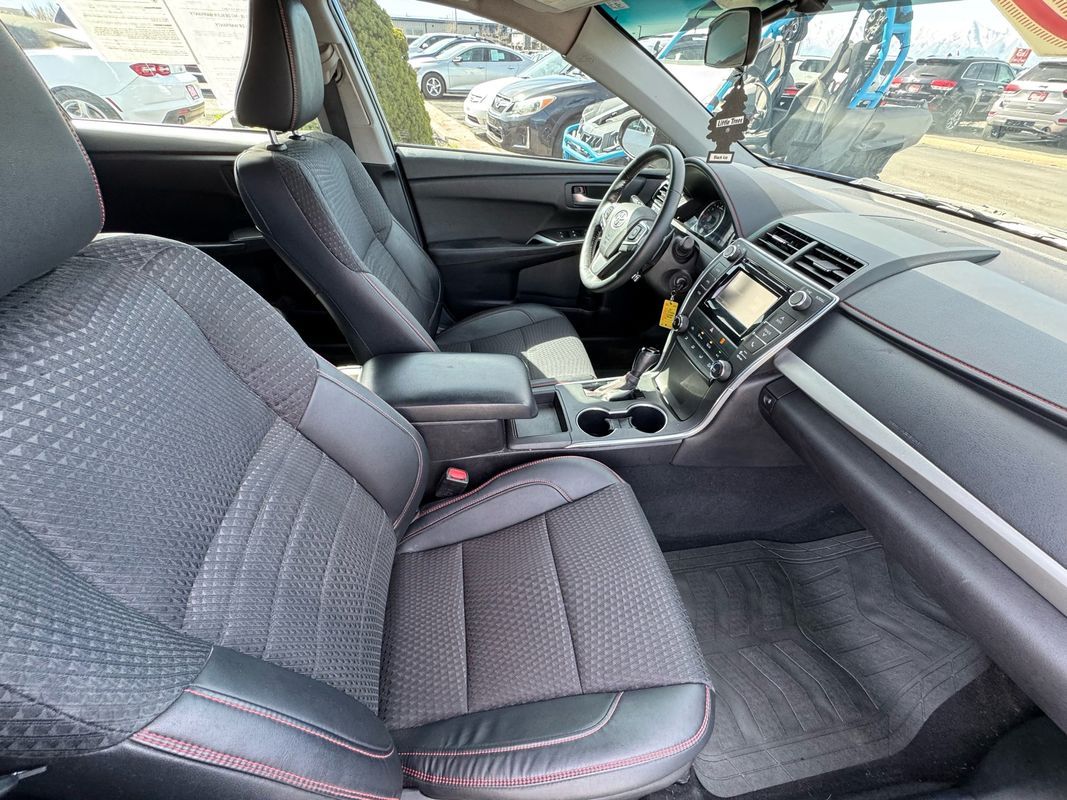 Bluetooth,Backup Camera,Driver seat power adjustments: height lumbar, reclining, 8,Front headrests: adjustable 2,Front seat type: bucket,Passenger seat manual adjustments: reclining 4,Rear headrests: adjustable 3,Rear seat folding: split,Rear seat type: 60-40 split bench,Upholstery: premium cloth,ABS: 4-wheel,Braking assist: ,Electronic brakeforce distribution: ,Front brake diameter: 11.7,Front brake type: ventilated disc,Power brakes: ,Rear brake diameter: 11.0,Rear brake type: disc,Battery saver: ,Daytime running lights: ,Exterior entry lights: approach lamps,Headlights: auto delay off auto on/off, halogen,Camera system: rearview,Child safety door locks: ,Child seat anchors: LATCH system,Crumple zones: front rear,Emergency interior trunk release: ,Impact absorbing seats: dual front,Rearview monitor: in dash,Safety brake pedal system: ,Airbag deactivation: occupant sensing passenger,Front airbags: dual,Knee airbags: dual front,Side airbags: front rear,Side curtain airbags: front rear,Side mirror adjustments: manual folding power,Side mirrors: heated,Front wipers: intermittent,Power windows: safety reverse,Solar-tinted glass: ,Window defogger: rear,Anti-theft system: vehicle immobilizer,Power door locks: anti-lockout auto-locking,Steering ratio: 14.8,Turns lock-to-lock: 2.90,Emergency locking retractors: front rear,Front seatbelts: 3-point,Rear seatbelts: 3-point,Seatbelt force limiters: front,Seatbelt pretensioners: front,Seatbelt warning sensor: front,Axle ratio: 3.63,Front shock type: gas,Front spring type: coil,Front stabilizer bar: ,Front struts: MacPherson,Front suspension classification: independent,Front suspension type: lower control arms,Rear shock type: gas,Rear spring type: coil,Rear stabilizer bar: ,Rear struts: MacPherson,Rear suspension classification: independent,Rear suspension type: multi-link,Tuned suspension: sport,Wireless data link: Bluetooth,Antenna type: element,Auxiliary audio input: Bluetooth USB, iPod/iPhone, jack,In-Dash CD: MP3 Playback single disc,Radio: AM/FM touch screen display, voice operated,Radio data system: ,Speed sensitive volume control: ,Total speakers: 6,Spare tire mount location: inside,Spare tire size: temporary,Spare wheel type: steel,Tire Pressure Monitoring System: ,Tire type: all season,Wheels: aluminum alloy,Clock: ,Digital odometer: ,External temperature display: ,Fuel economy display: MPG range,Gauge: tachometer,Multi-function display: ,Trip odometer: ,Warnings and reminders: low fuel level maintenance due,Air filtration: ,Front air conditioning: ,Front air conditioning zones: single,Armrests: rear center with cupholders,Floor material: carpet,Interior accents: metallic-tone,Steering wheel trim: leather,Door handle color: body-color,Exhaust tip color: chrome,Front bumper color: body-color,Grille color: smoked chrome,Headlight bezel color: black,Mirror color: body-color,Rear bumper color: body-color,Rear spoiler: lip,Rear spoiler color: body-color,Window trim: black,Assist handle: front rear,Cargo area light: ,Center console: front console with armrest and storage,Cruise control: ,Cupholders: front rear,Multi-function remote: keyless entry panic alarm, trunk release,One-touch windows: 2,Overhead console: front,Power outlet(s): two 12V,Power steering: ,Power windows: lockout button,Reading lights: front rear,Rearview mirror: manual day/night,Steering wheel: tilt and telescopic,Steering wheel mounted controls: audio cruise control, paddle shifter, phone,Storage: door pockets front seatback, sunglasses holder,Vanity mirrors: dual illuminating,Infotainment: Entune,Infotainment screen size: 6.1 in.,Stability control: ,Traction control: