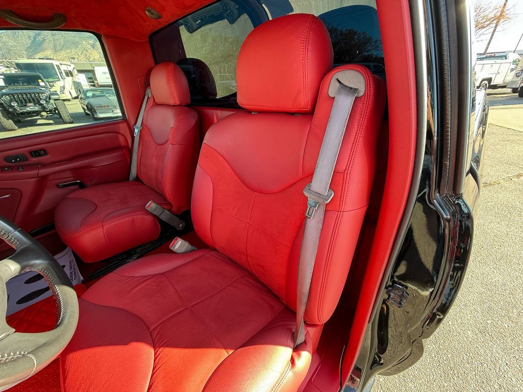 Step inside to experience luxury with a full red interior outfitted with Denali seats and Alpine sub speakers that alone are worth over $10k. Built for both performance enthusiasts and those seeking comfort, it features DJM suspension with mini C notch and is ready for boost or enjoyment as is. This truck passes emissions effortlessly while being built to hold up to an impressive 600 hp thanks to its durable 4L65E Circle D transmission 2500 stall, this transmission is built to hold up to 600hp. Don’t miss your chance—experience unparalleled craftsmanship today!