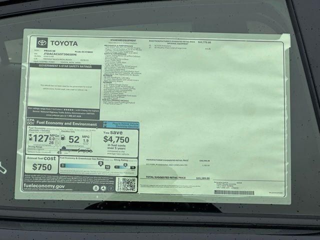 2026 Toyota Prius Plug-In Hybrid SE Midnight Black Metallic FWD Continuously Variable (ECVT) 2.0L 4-Cylinder DOHC 16V VVT