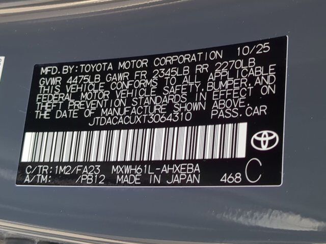 2T EF FE,ALL WEATHER FLOOR LINERS/CARGO LINER (TMS),REAR BUMPER APPLIQUE (TMS),Front Wheel Drive,Power Steering,ABS,4-Wheel Disc Brakes,Brake Assist,Brake Actuated Limited Slip Differential,Lithium Ion Traction Battery,Aluminum Wheels,Wheel Covers,Tires - Front All-Season,Tires - Rear All-Season,Wheel Covers,Heated Mirrors,Power Mirror(s),Rear Defrost,Intermittent Wipers,Variable Speed Intermittent Wipers,Rain Sensing Wipers,Power Door Locks,Daytime Running Lights,Automatic Headlights,LED Headlights,Automatic Highbeams,AM/FM Stereo,Satellite Radio,HD Radio,Smart Device Integration,Requires Subscription,MP3 Capability,Steering Wheel Audio Controls,Auxiliary Audio Input,Bluetooth Connection,Bucket Seats,Pass-Through Rear Seat,Rear Bench Seat,Adjustable Steering Wheel,Trip Computer,Power Windows,WiFi Hotspot,Heated Steering Wheel,Keyless Entry,Power Door Locks,Keyless Start,Keyless Entry,Power Door Locks,Cruise Control,Adaptive Cruise Control,Climate Control,A/C,Cloth Seats,Driver Vanity Mirror,Passenger Vanity Mirror,Driver Illuminated Vanity Mirror,Passenger Illuminated Visor Mirror,Cargo Shade,Smart Device Integration,Requires Subscription,Navigation System,Smart Device Integration,Power Windows,Power Door Locks,Trip Computer,Immobilizer,Cruise Control Steering Assist,Traction Control,Stability Control,Traction Control,Front Side Air Bag,Telematics,Requires Subscription,Blind Spot Monitor,Cross-Traffic Alert,Cross-Traffic Alert,Lane Departure Warning,Lane Keeping Assist,Lane Departure Warning,Front Collision Mitigation,Driver Monitoring,Evasion Assist,Tire Pressure Monitor,Driver Air Bag,Passenger Air Bag,Front Head Air Bag,Rear Head Air Bag,Passenger Air Bag Sensor,Front Side Air Bag,Rear Side Air Bag,Child Safety Locks,Back-Up Camera
