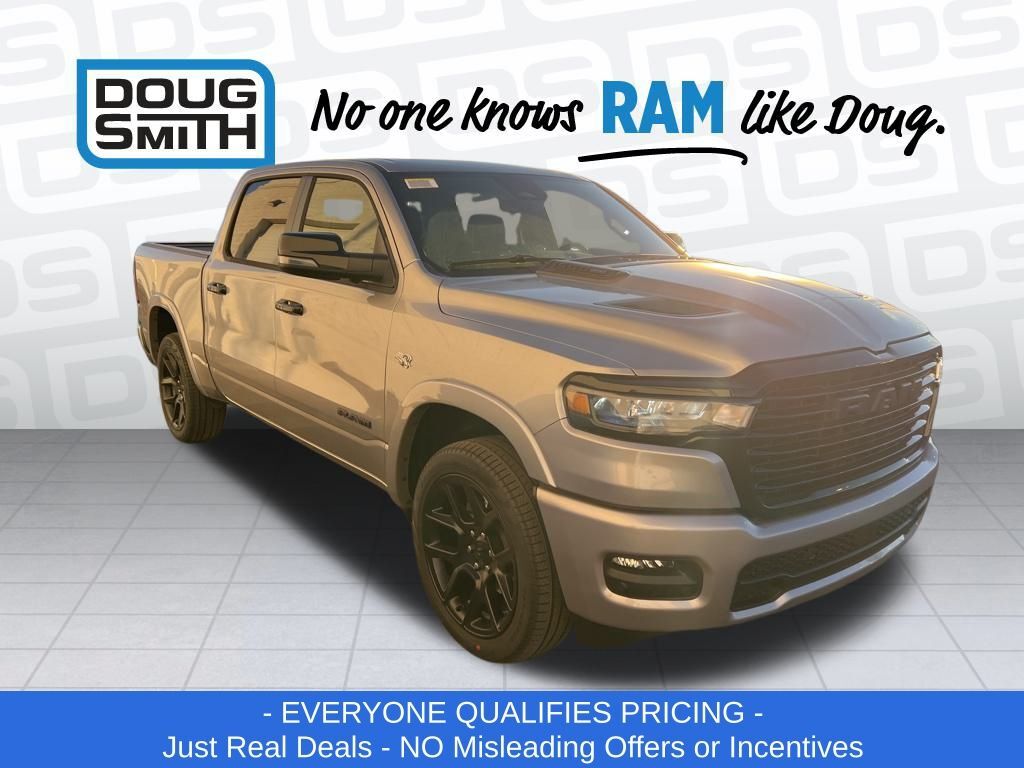 Billet Silver Metallic Clearcoat 2026 Ram 1500 Laramie 4WD 8-Speed Automatic HEMI 5.7L V8 Multi Displacement VVT eTorque Price includes: $1000 - 2026 National Bonus Cash . Exp. 03/02/2026 $1000 - 2026 West BC SFS Bonus Cash . Exp. 03/02/2026 $3500 - 2026 National Retail Consumer Cash . Exp. 03/02/2026 - Advertised Price reflects a $1,500 Financing Discount. To qualify for this discount, customer must secure credit approval and finance with a dealership lender. Cash purchases or outside financing will void the discount, increasing the final price by $1,500. Exp. 02/28/2026 - See Doug Smith CDJR for full details. - Sale Price Includes: $1,500 Trade-In Allowance Incentive Program for customers that trade in a 2015 or newer passenger vehicle with 100,000 miles or less. - Offer Exp. 02/28/2026 - See Doug Smith CDJR for full details.