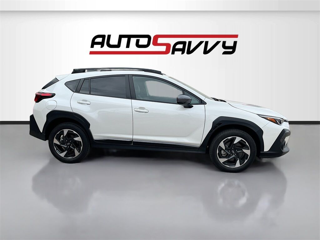 Experience the 2024 Subaru Crosstrek Limited AWD at AutoSavvy Windsor, a stunning blend of style, performance, and technology. This Crystal White Pearl sport utility vehicle, with only 1,558 miles, offers a virtually new driving experience. Under the hood, the 2.5L H-4 engine delivers 182 horsepower, paired with a Lineartronic CVT for smooth, efficient performance, achieving up to 33 MPG on the highway. Enjoy the luxury of leather front seat upholstery, heated seats, and dual-zone climate control, all set against a sleek black interior with orange stitching. Stay connected with the Subaru STARLINK 11.6-inch Multimedia Plus system, featuring Apple CarPlay, Android Auto, and a Wi-Fi hotspot. The Crosstrek's advanced safety features include EyeSight Driver Assist Technology, blind spot detection, and a rear cross-traffic alert, ensuring peace of mind on every journey. The current status of the title is branded, reflecting AutoSavvy Windsor's commitment to transparency and quality. As a Savvy Certified vehicle, this Crosstrek includes the added benefit of a 4-month/4,500-mile warranty, providing peace of mind for your investment. This vehicle has undergone a meticulous inspection to meet high safety and performance standards, ensuring exceptional reliability and value. With its low mileage, advanced features, and sophisticated design, the 2024 Subaru Crosstrek Limited AWD is ready to elevate your driving experience. Visit AutoSavvy Windsor today to explore this remarkable vehicle and make it yours!