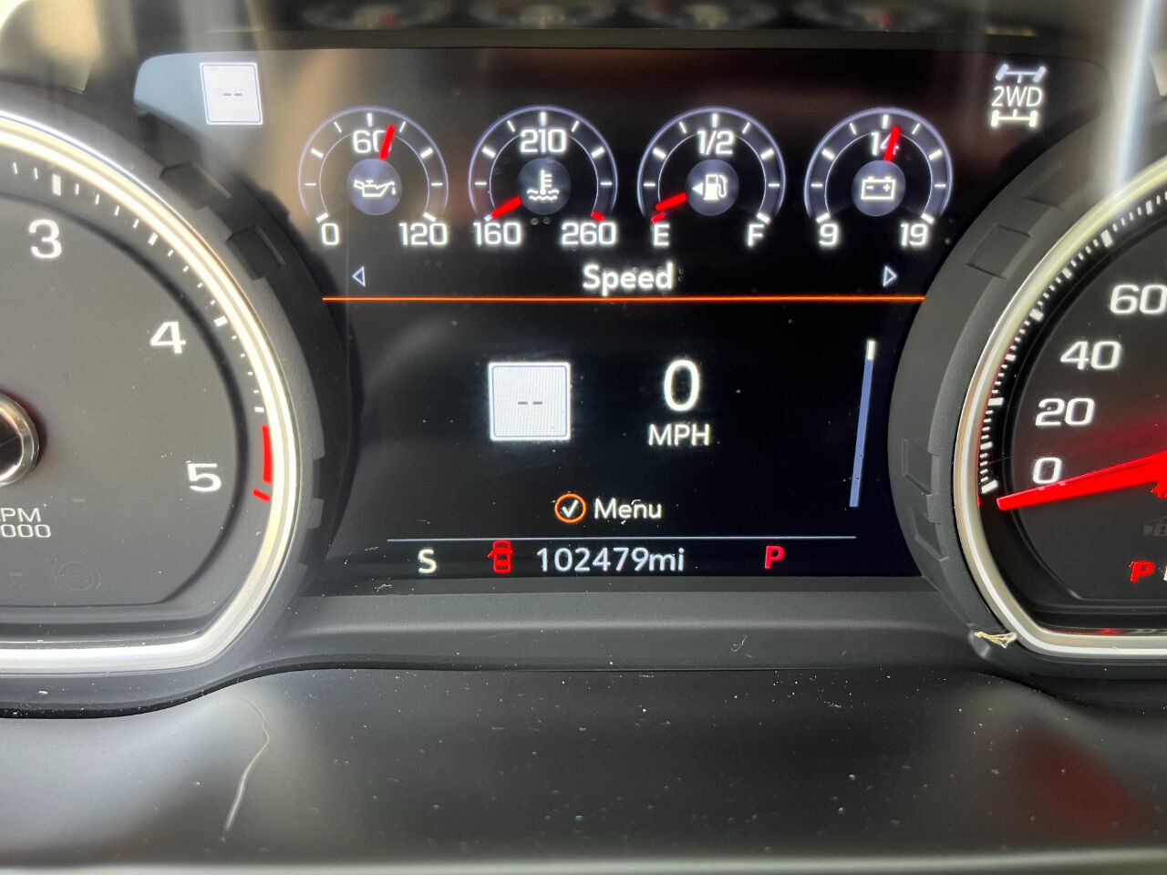 Rear axle- 3.73 ratio (Requires (L8T) 6.6L V8 gas engine. Not available with (L5P) Duramax 6.6L Turbo-Diesel V8 engine.),Durabed- pickup bed,Air filter- heavy-duty,Air filtration monitoring,Transfer case- two-speed active electronic Autotrac with push button control (Requires 4WD models.),Auto-locking rear differential,Four wheel drive,Cooling- external engine oil cooler,Cooling- auxiliary external transmission oil cooler,Battery- heavy-duty 720 cold-cranking amps/80 Amp-hr maintenance-free with rundown protection and retained accessory power (Included and only available with (L8T) 6.6L V8 gas engine.),Alternator- 170 amps (Requires (L8T) 6.6L V8 gas engine.),Trailer brake controller- integrated,Frame- fully-boxed- hydroformed front section and a fully-boxed stamped rear section,Suspension Package,Steering- Digital Variable Steering Assist this system automatically adjusts steering based on speed- road conditions- and other inputs to reduce driver effort and fatigue,Brakes- 4-wheel antilock- 4-wheel disc with DURALIFE rotors,Brake lining wear indicator,Capless Fuel Fill (Requires (L8T) 6.6L V8 gas engine. Not available with (ZW9) pickup bed delete.),Single Rear Wheels,Tire carrier lock keyed cylinder lock that utilizes same key as ignition and door (Deleted with (ZW9) pickup bed delete.),Bumper- front chrome,Bumper- rear chrome,CornerStep- rear bumper,BedStep- Black integrated on forward portion of bed on driver and passenger side (Deleted when (ZW9) pickup bed delete is ordered.),Moldings- beltline- stainless steel,Wheelhouse liners- rear (Not available with dual rear wheels.),Cargo tie downs (12)- fixed- rated at 500 lbs per corner (Deleted with (ZW9) pickup bed delete.),Chrome front grille bar with ""CHEVROLET"". Includes Chrome grille inserts with small Gold bowtie emblem.,Fog lamps- front- LED,Taillamps- LED with signature,Lamps- cargo area cab mounted integrated with center high mount stop lamp- with switch in bank on left side of steering wheel,Mirrors- outside power-adjustable vertical trailering with heated and auto-dimming upper glass- (driver and passenger) lower convex mirrors- turn signal indicators- puddle lamps- perimeter lighting- auxiliary lighting- power folding/extending (extends 3.31"" [84.25mm]),Mirror caps- chrome,Glass- deep-tinted,Door handles- chrome,Tailgate- standard (Deleted with (ZW9) pickup bed delete.),Tailgate and bed rail protection cap- top,Hood Insulator,Audio system feature- 6-speaker system,Wi-Fi Hotspot capable (Terms and limitations apply. See onstar.com or dealer for details.),Seat adjuster- driver 10-way power including lumbar,Seat adjuster- passenger 10-way power including lumbar,Seat- Up-level Rear with Storage Package- 60/40 folding bench for Crew Cab models- includes full-length bench seat- seatback storage on left and right side- center fold out armrest with 2 cupholders- full cab width under-seat storage- (includes child seat top tether anchor),Driver memory- recalls driver ""presets"" for power driver seat and outside mirrors,Floor covering- color-keyed carpeting,Steering wheel- wrapped,Steering wheel- heated,Steering column- manual tilt and telescoping,Steering wheel audio controls,Instrument cluster- 6-gauge cluster featuring speedometer- fuel level- engine temperature- tachometer- voltage and oil pressure,Driver Information Center- 4.2"" diagonal color display includes driver personalization,Advanced Trailering System includes checklist- trailer maintenance reminders- trailer security alerts- trailer mileage- tow/haul reminder- trailer electrical diagnostics and Trailer Tire Pressure Monitor System module (With (ZW9) pickup bed delete no provision for a trailer tire pressure monitor system will exist but all the other (U1D) features will remain.),Exterior Temperature Display located in radio display,Compass- located in instrument cluster,Window- power front- drivers express up/down,Remote vehicle starter system,Cruise control- electronic with set and resume speed- steering wheel-mounted,Theft-deterrent system- unauthorized entry,Steering column- lock control- electrical,Power outlet- instrument panel- 120-volt (400 watts shared with (KC9) bed mounted power outlet),USB ports- dual- charge-only (2nd row),Power outlet- bed mounted- 120-volt (400 watts shared with (KI4) instrument panel mounted power outlet) (Deleted when (ZW9) pickup bed delete is ordered.),Assist handles front A-pillar mounted for driver and passenger- rear B-pillar mounted,Chevrolet Connected Access capable (Subject to terms. See onstar.com or dealer for details.),StabiliTrak- stability control system with Proactive Roll Avoidance and traction control includes electronic trailer sway control and hill start assist,Airbags- Dual-stage frontal airbags for driver and front outboard passenger; Seat-mounted side-impact airbags for driver and front outboard passenger; Head-curtain airbags for front and rear outboard seating positions; Includes front outboard Passenger Sensing System for frontal outboard passenger airbag (Always use seat belts and child restraints. Children are safer when properly secured in a rear seat in the appropriate child restraint. See the Owner's Manual for more information.),Hitch Guidance dynamic single line to aid in trailer alignment for hitching (Deleted with (ZW9) pickup bed delete.),Hitch Guidance with Hitch View (Not available with (ZW9) pickup bed delete.),Rear Seat Reminder,Seat Belt Adjustable Guide Loops front row only (Not available with (ZW9) pickup bed delete.),Teen Driver a configurable feature that lets you activate customizable vehicle settings associated with a key fob- to help encourage safe driving behavior. It can limit certain available vehicle features- and it prevents certain safety systems from being turned off. An in-vehicle report card gives you information on driving habits and helps you to continue to coach your new driver