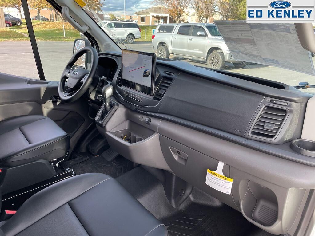 Order Code 101A: 16" Silver Steel Wheels with Black Hubcap; 10-Speed Automatic Transmission with OD and SelectShift; 3.73 Axle Ratio; Vinyl Front Bucket Seats; 3.5L PFDi V6 Flex-Fuel Engine; Dark Palazzo Gray Vinyl Bucket Seats; 235/65R16C 121/119 R AS BSW Tires; 9,150 lbs GVWR; AM/FM Stereo,Heavy-Duty Load Floor & Scuff Plate Protection Pkg,Heavy-Duty Scuff Plate Kit,Midship Extended Range Fuel Tank (31 Gallons),253-Degree Rear Door Opening,2 Additional Keys (4 Total),Apple CarPlay/Android Auto smart device wireless mirroring,Pre-Collision Assist with Pedestrian Detection,FordPass Connect 5G mobile hotspot internet access,Rear mounted camera,Lane-Keeping System,Brake assist system,Cruise Control w/Adjustable Speed Limiting Device (ASLD) cruise control with steering wheel mounted controls,Connected Navigation integrated navigation system with voice activation,Primary monitor touchscreen,3.5L V-6 port/direct injection, DOHC, variable valve control, regular unleaded, engine with 275HP,3.5L V-6 DOHC,Voice Assistant - Ford Connectivity Package (1-year included) built-in virtual assistant,PCA with AEB and Intersection Assist forward collision mitigation with left turn assist,Driver Alert,Front windshield solar coating,Push-button,Automatic brake hold,Wireless audio streaming,Smart key with push button start,Auto High Beam auto high-beam headlights,SecuriLock immobilizer,Real-time traffic,Bluetooth handsfree wireless device connectivity,SYNC 4 external memory control,Ford Co-Pilot360 w/Side Wind Stabilization electronic stability control system with anti-roll,Hill start assist,Front and rear parking sensors,3 12V power outlets,Post Collision Braking automatic post-collision braking system,Real-time weather,911 Assist emergency SOS system via mobile device,Ford App mobile app access,Gauge cluster display size: 8.00,Manual tilting steering wheel,Manual telescopic steering wheel,Capless fuel filler,Wheel hub covers,16 x 6.5-inch front and rear argent steel wheels,Over the air updates,LT235/65RR16 AS BSW 720 RPM front and rear tires,Vinyl front seat upholstery,6 airbags,Driver front impact airbag,Seat mounted side impact driver airbag,Safety Canopy System curtain first-row overhead airbags,Cancellable front passenger air bag,Seat mounted side impact front passenger airbag,Airbag occupancy sensor,Auto-locking doors,10-speed automatic