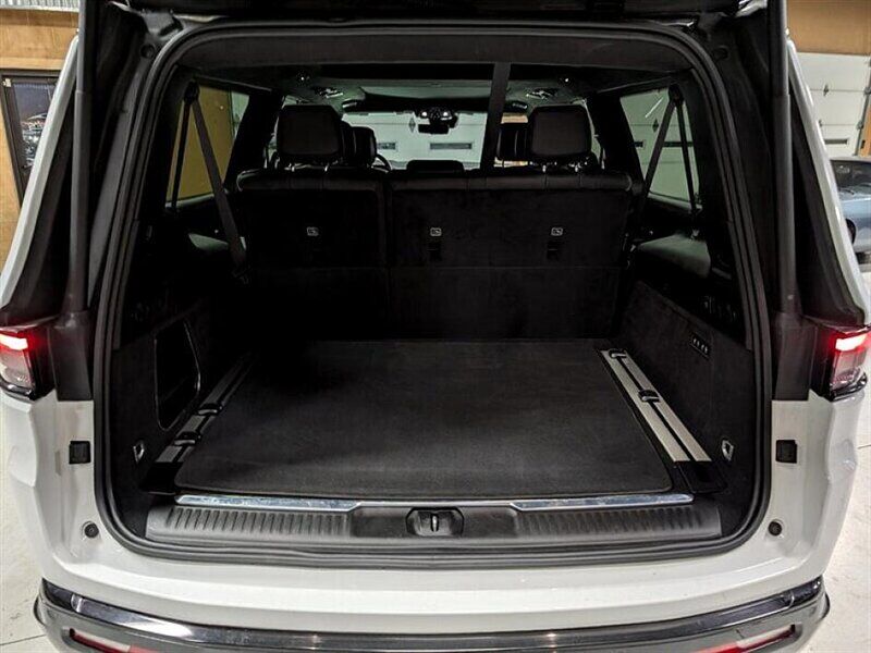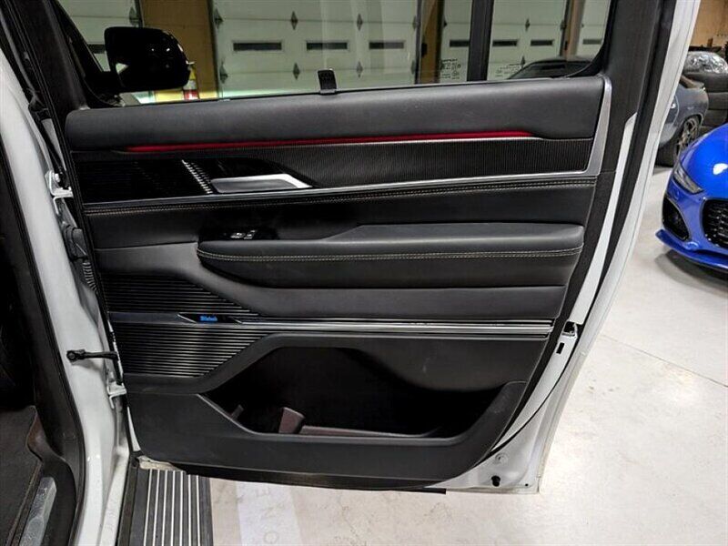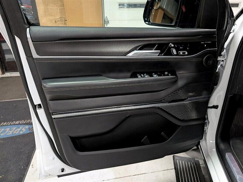 INSTALLED FEATURES: Air filtration, Front air conditioning: automatic climate control, Front air conditioning zones: dual, Rear air conditioning: automatic climate control / independently controlled, Rear air conditioning zones: dual, Airbag deactivation: occupant sensing passenger, Front airbags: dual, Knee airbags: dual front, Side airbags: front, Side curtain airbags: front / rear / third row, Antenna type: diversity / mast, Auxiliary audio input: Bluetooth / iPod/iPhone / jack / USB, Digital sound processing, Internet radio app: Pandora, Premium brand: McIntosh, Radio: AM/FM / HD radio / touch screen display / voice operated, Radio data system, Satellite radio: SiriusXM, Speed sensitive volume control, Subwoofer: 1, Surround sound, Total speakers: 22, Watts: 1375, ABS: 4-wheel, Brake drying, Braking assist, Electronic brakeforce distribution, Electronic parking brake: auto off, Emergency braking preparation, Front brake type: ventilated disc, Power brakes, Rear brake type: disc, Armrests: dual front, Cargo area floor mat: reversible carpet and rubber/vinyl, Center console trim: aluminum, Dash trim: aluminum, Door sill trim: chrome / scuff plate, Door trim: aluminum / leather, Floor mat material: carpet, Floor material: cargo area carpet / carpet, Floor mats: front / rear / third row, Headliner trim: faux suede, Heated steering wheel, Interior accents: leather, Steering wheel trim: leather, Active parking system: fully automated, Adaptive cruise control, Adaptive stop and go cruise control: semi-automatic, Adjustable pedals: power, Ambient lighting: color-adjustable, Assist handle: front / rear, Capless fuel filler system, Cargo area light, Center console: front console with armrest and storage / rear console with armrest and storage, Conversation mirror, Courtesy lights: door, Cupholders: front / rear / third row, Easy entry: power driver seat / power rear seat, Footwell lights: color-adjustable, Memorized settings: 2 driver / adjustable pedals / audio system / driver seat / liftgate / passenger seat / side mirrors / steering wheel, Multi-function remote: panic alarm / proximity entry system / trunk release, One-touch windows: 4, Overhead console: front, Power outlet(s): 115V rear / 12V cargo area / 12V front / 12V rear / USB front / USB rear / USB third row / USB-C front / USB-C rear / USB-C third row, Power steering: variable/speed-proportional, Power windows: lockout button, Push-button start, Reading lights: front / rear, Rearview mirror: camera-based, Remote engine start, Steering wheel: power tilt and telescopic, Steering wheel mounted controls: audio / cruise control / multi-function / phone / voice control, Storage: accessory hook / cargo net / cargo tie-down anchors and hooks / cooled compartment / door pockets / front seatback, Sunshade: side window, Universal remote transmitter: garage door opener, Vanity mirrors: dual illuminating, Wireless charging station: front, Active grille shutters, Bumper detail: rear protector, Door handle color: body-color, Exhaust: dual tip / hidden, Exhaust tip color: black, Fender lip moldings: body-color, Front bumper color: body-color, Grille color: black, License plate bracket: front, Mirror color: black, Paint: contrast roof, Rear bumper color: black, Rear trunk/liftgate: liftgate / power operated / sensor-activated, Rocker panel color: black, Running board color: black, Running boards: power retractable, Window trim: black, Connected in-car apps: Amazon Alexa / Google POIs / Google search, Infotainment: Uconnect, Infotainment screen size: 12 in., Smartphone integration: wireless Android Auto / wireless Apple CarPlay, Video system: screen mirroring, Clock, Compass, Customizable instrument cluster, Digital odometer, External temperature display, Fuel economy display: MPG / range, Gauge: tachometer, Head-up display, Instrument cluster screen size: 12.3 in., Multi-function display, Trip odometer, Warnings and reminders: coolant temperature warning / lamp failure / low fuel level / low oil pressure / maintenance due, Daytime running lights: LED, Exterior entry lights: approach lamps / puddle lamps, Front fog lights: cornering / LED, Headlights: auto delay off / auto high beam dimmer / auto on/off / LED / wiper activated, Taillights: LED, Side mirror adjustments: power / power folding / reverse gear tilt, Side mirrors: driver side auto-dimming / heated / integrated turn signals, 4WD selector: electronic hi-lo, 4WD type: on demand, Alternator: 230 amps, Auto start/stop, Battery: maintenance-free, Battery rating: 700 CCA, Battery saver, Drive mode selector, Emissions: 50 state, Limited slip differential: rear, 3rd row moonroof / sunroof: fixed glass, Moonroof / Sunroof: anti-trapping / one-touch open/close / power panoramic / power sunshade / tilt/slide, Moonroof / Sunroof wind deflector, Roof rack crossbars: black, Roof rails: black, Automatic emergency braking: front / front pedestrian / rear, Blind spot safety: sensor/alert, Camera system: surround view, Camera system washer: rear, Check rear seat reminder, Child safety door locks, Child seat anchors: LATCH system, Cross traffic alert: rear, Crumple zones: front / rear, Driver attention alert system, Impact sensor: alert system / post-collision safety system, Lane deviation sensors, Lane keeping assist, Parking sensors: front / rear, Pre-collision warning system: audible warning / pedestrian detection / visual warning, Rearview monitor: in dash, Traffic sign recognition, Emergency locking retractors: front / rear / third row, Front seatbelts: 3-point, Rear seatbelts: 3-point, Seatbelt force limiters: front, Seatbelt pretensioners: front, Seatbelt warning sensor: front, Third row seatbelts: 3-point, Driver seat: heated / massaging / ventilated, Driver seat power adjustments: 20 / 4-way power lumbar / height / reclining, Front headrests: 2 / power adjustable, Front seat type: bucket, Passenger seat: heated / massaging / ventilated, Passenger seat power adjustments: 20 / 4-way power lumbar / heig