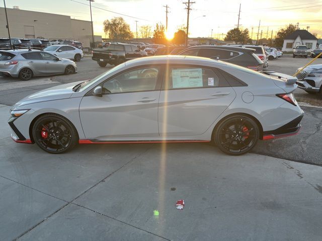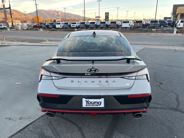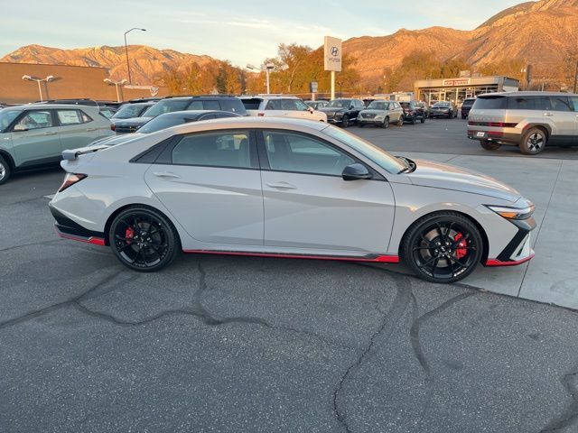 Cyber Gray 2026 Hyundai Elantra N FWD 6-Speed Manual 2.0L 4-Cylinder Turbocharged 21/29 City/Highway MPG ABS brakes, Alloy wheels, Compass, Electronic Stability Control, Front dual zone A/C, Heated door mirrors, Heated front seats, Illuminated entry, Low tire pressure warning, Navigation System, Remote keyless entry, Traction control.