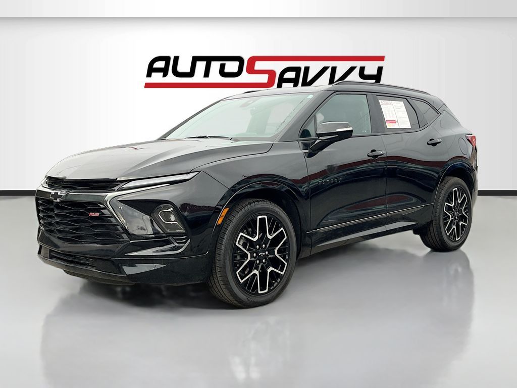 Discover the 2023 Chevrolet Blazer AWD RS at AutoSavvy Lindon, a sleek and powerful sport utility vehicle that seamlessly blends style, performance, and advanced technology. This Black beauty, with just 2,816 miles, is practically new and ready for your next adventure. Under the hood, a robust 3.6L V-6 engine delivers 308 horsepower, paired with a 9-speed automatic transmission for a smooth and dynamic drive. Enjoy premium features like leather front seat upholstery with Jet Black and Red Accents, a panoramic sunroof, and a Bose Premium 8-Speaker Audio System for an immersive driving experience. Stay connected with Apple CarPlay, Android Auto, and a 10.2-inch touchscreen display, while safety features such as Adaptive Cruise Control, Blind Spot Monitor, and Enhanced Automatic Emergency Braking ensure peace of mind on every journey. This 2023 Chevrolet Blazer comes with a branded title, underscoring AutoSavvy's commitment to offering exceptional value without compromising quality. Each vehicle undergoes a rigorous inspection to meet stringent safety and performance standards, ensuring reliability and peace of mind. As a Savvy Certified vehicle, it is backed by our 4-month/4,500 Mile Warranty, providing additional assurance for your investment. AutoSavvy Lindon is renowned for offering high-quality, low-mileage vehicles with premium features at substantial savings. Join the community of savvy buyers who appreciate the unique benefits of purchasing from AutoSavvy. Visit AutoSavvy Lindon today to explore this outstanding Chevrolet Blazer and experience the perfect blend of luxury, technology, and reliability.