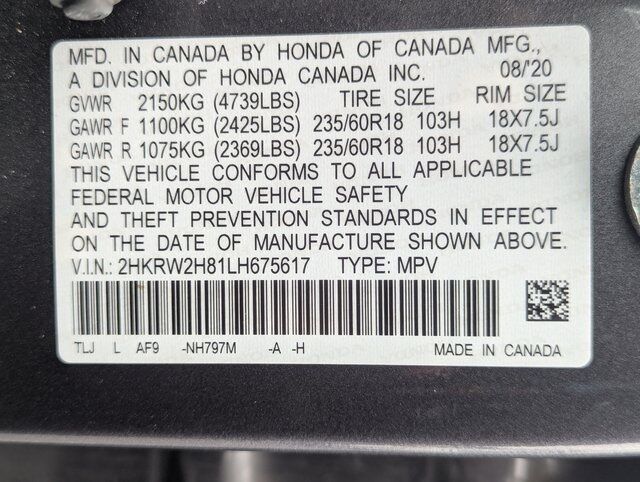 Gray 2020 Honda CR-V EX-L AWD CVT 1.5L I4 DOHC 16V AWD.