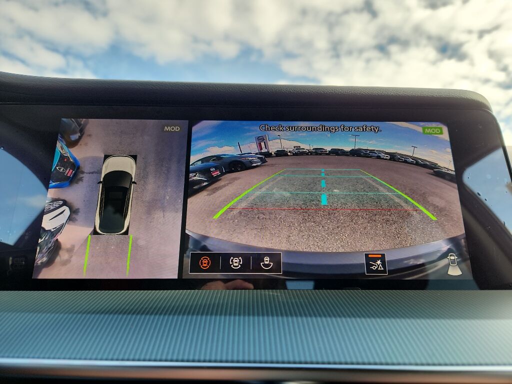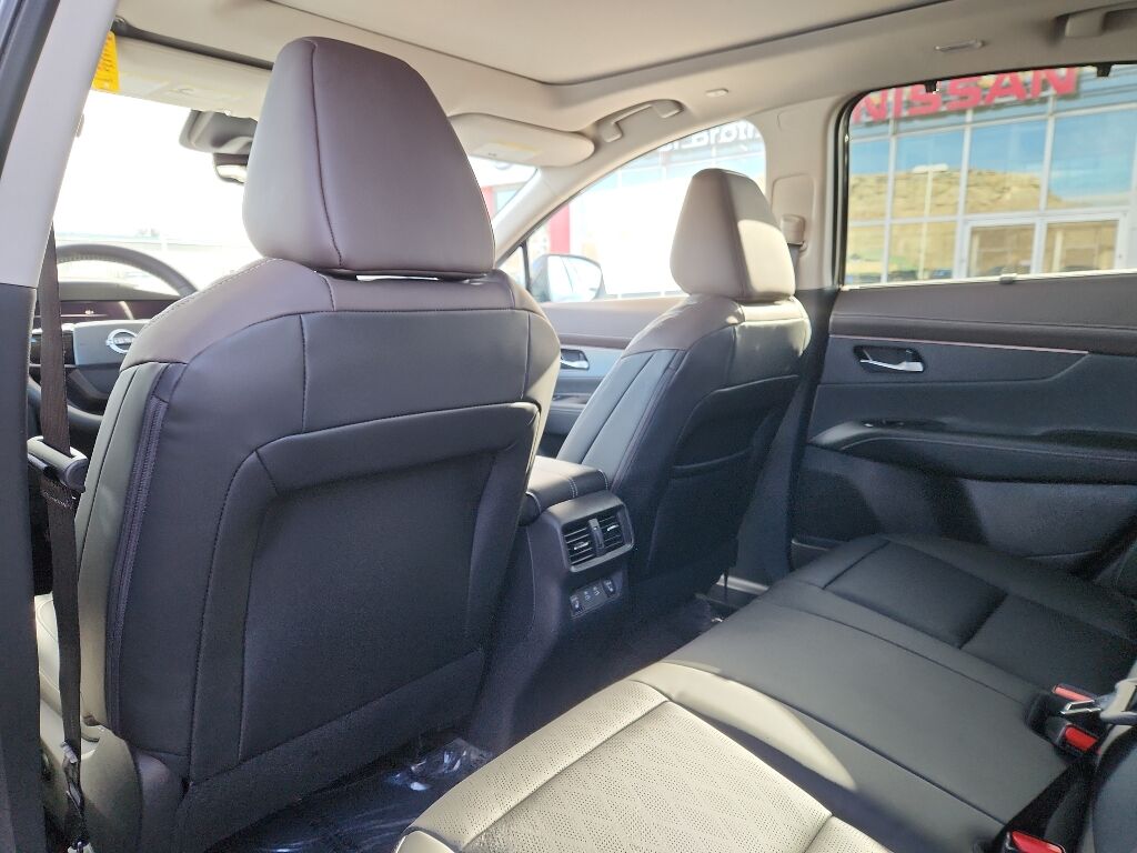 Cargo Package: 3-Position Cargo Area Protector; Retractable Cargo Cover; Cargo Net; First Aid Kit,Carpeted Floor and Cargo Mats,Illuminated Kick Plates,Painted Splash Guards,Wireless Apple CarPlay/Wireless Android Auto smart device wireless mirroring,ProPILOT Assist hands-on cruise control,Intelligent Forward Collision Warning w/Automatic Emergency Braking (AEB),Automatic Emergency Braking with Pedestrian Detection (P-AEB),NissanConnect with Wi-Fi Hotspot mobile hotspot internet access,RearView Monitor rear mounted camera,Intelligent Lane Intervention (I-LI),Rear Cross Traffic Alert (RCTA) w/Rear Automatic Braking (RAB) collision mitigation,Intelligent Cruise Control (ICC),Head-up display,Brake assist system,Cruise control with steering wheel mounted controls,Power liftgate rear cargo door,Ventilated driver and front passenger seats,NissanConnect with Navigation and Services integrated navigation system with voice activation,Keyfob remote start,Heated steering wheel,Heated driver and front passenger seats,Heated rear seats,Semi-Aniline leather front seat upholstery,Primary monitor touchscreen,First and second-row sliding and tilting glass sunroof with express open/close activation sunshade,Driver seat power reclining, lumbar support, cushion tilt, fore/aft control and height adjustable control,Intelligent All-Wheel Drive automatic full-time AWD,VC-Turbo 2L I-4 port/direct injection, DOHC, variable valve control, intercooled turbo, regular unleaded, engine with 241HP,VC-Turbo 2L I-4 DOHC,Front wireless smart device charging,Google Assistant built-in virtual assistant,Intelligent Driver Alertness (I-DA),Traffic Sign Recognition (TSR),Intelligent Key with hands-free access and push button start,Keyfob window control,HD Enhanced Intelligent Around View Monitor aerial view camera,Invisible Hood View ground view camera,Front windshield solar coating,Smart device remote start,Push-button,Automatic brake hold,Bluetooth wireless audio streaming,Gauge cluster display size: 12.30,Proximity cargo area access release,Front mounted camera,Right side camera,Left side camera,Blind Spot Intervention (BSI) / Blind Spot Warning (BSW),Dual-zone front climate control,Full gauge cluster screen,High Beam Assist (HBA) auto high-beam headlights,Massaging driver seat,Massaging front passenger seat