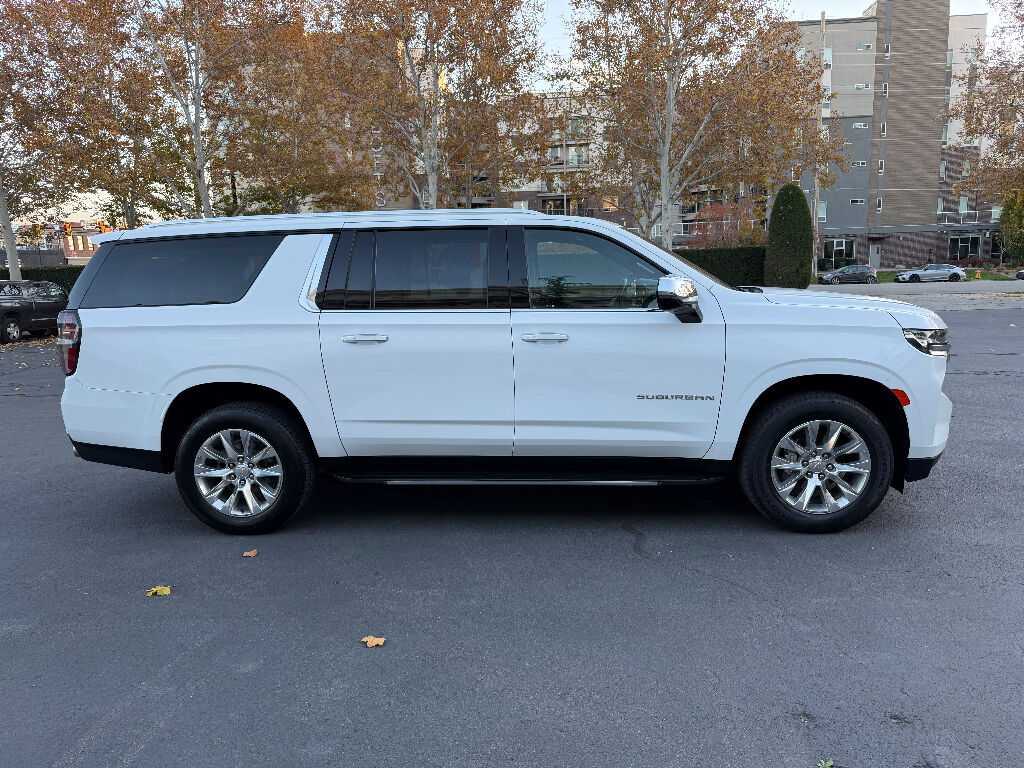 The 2023 Chevrolet Suburban Premier 4WD offers full-size luxury, power, and versatility for families and professionals who expect the best. Under the hood, a 5.3L EcoTec3 V8 engine paired with a 10-speed automatic transmission delivers refined strength and confident capability, while the 4WD system ensures all-weather control and off-road assurance. Finished in Summit White with a premium Jet Black leather interior, this Premier trim combines bold design with upscale comfort. The cabin features heated and ventilated front bucket seats, power-release heated second-row seats, and a power-folding third row for flexible cargo space. Tri-zone climate control, wireless charging, and a 10-speaker Bose® audio system elevate every drive. Advanced safety technology includes Chevy Safety Assist, Forward Collision Alert, Front Pedestrian Braking, Lane Keep Assist with Lane Departure Warning, Rear Cross Traffic Alert, and HD Rear Vision Camera, ensuring peace of mind for every passenger. Exterior highlights include LED headlamps and taillamps, hands-free power liftgate, dual exhaust with chrome tips, and 20-inch polished aluminum wheels for a commanding road presence. With Magnetic Ride Control, Hill Descent Control, and StabiliTrak® electronic stability control, the Suburban Premier blends power, comfort, and control in a timeless package.