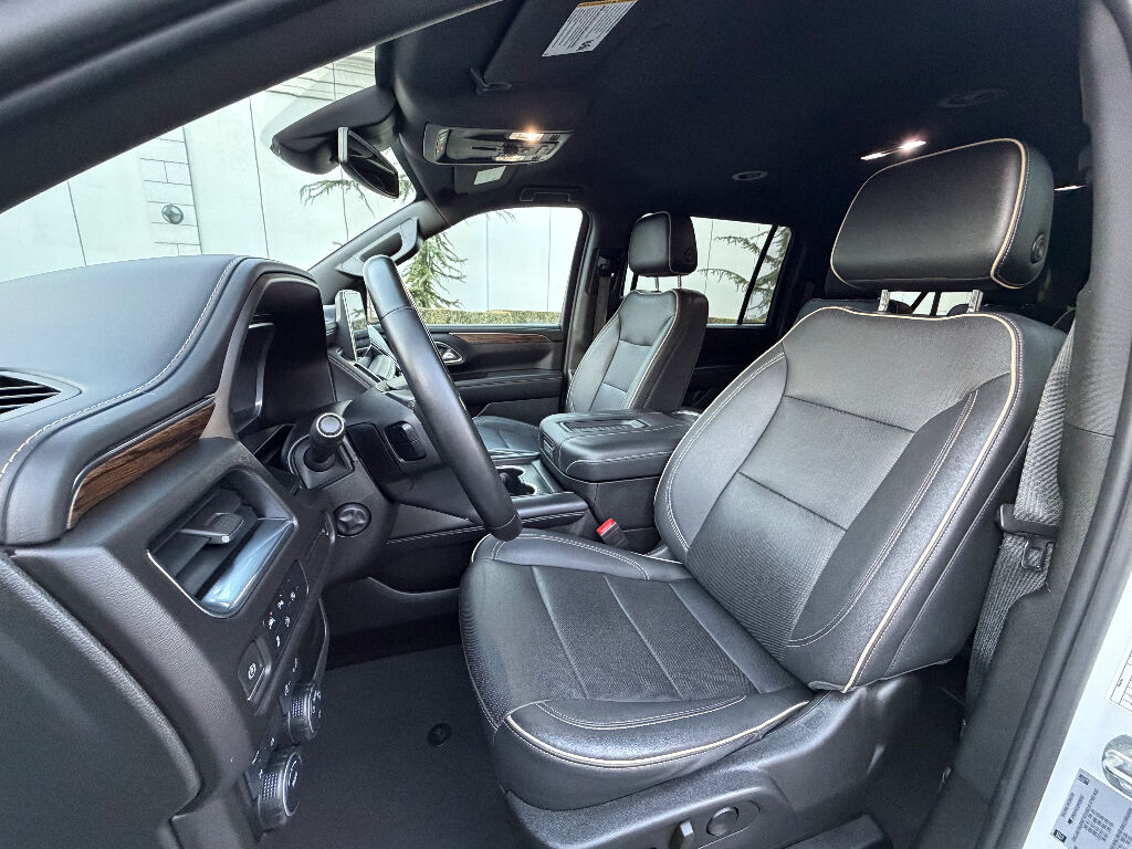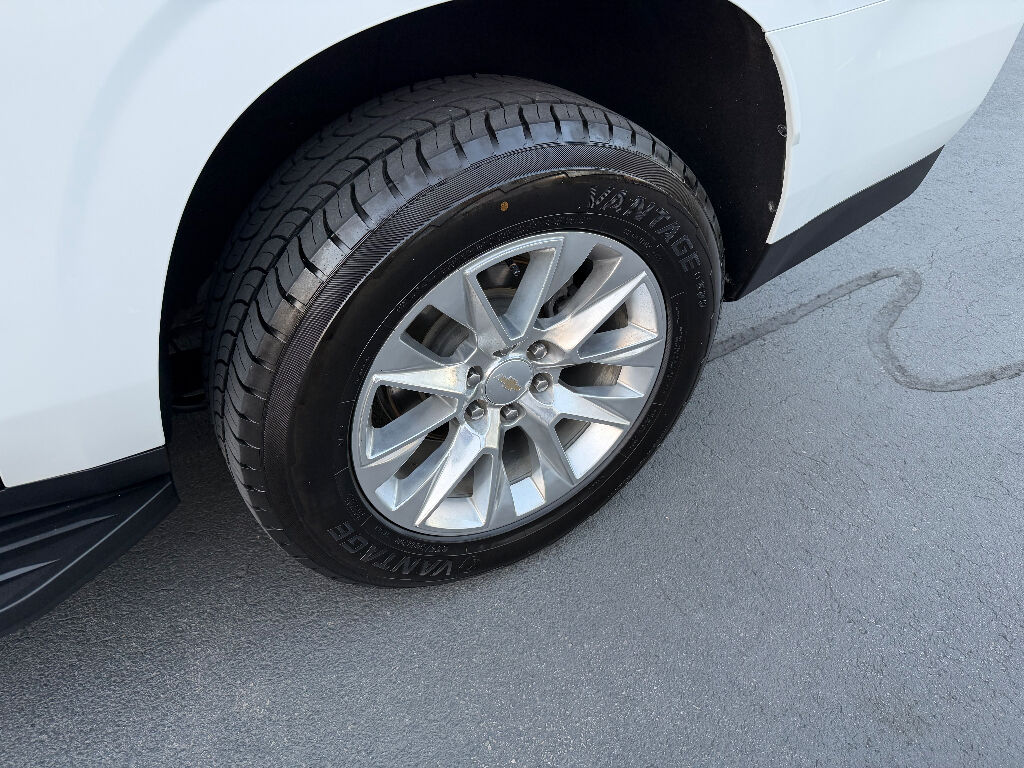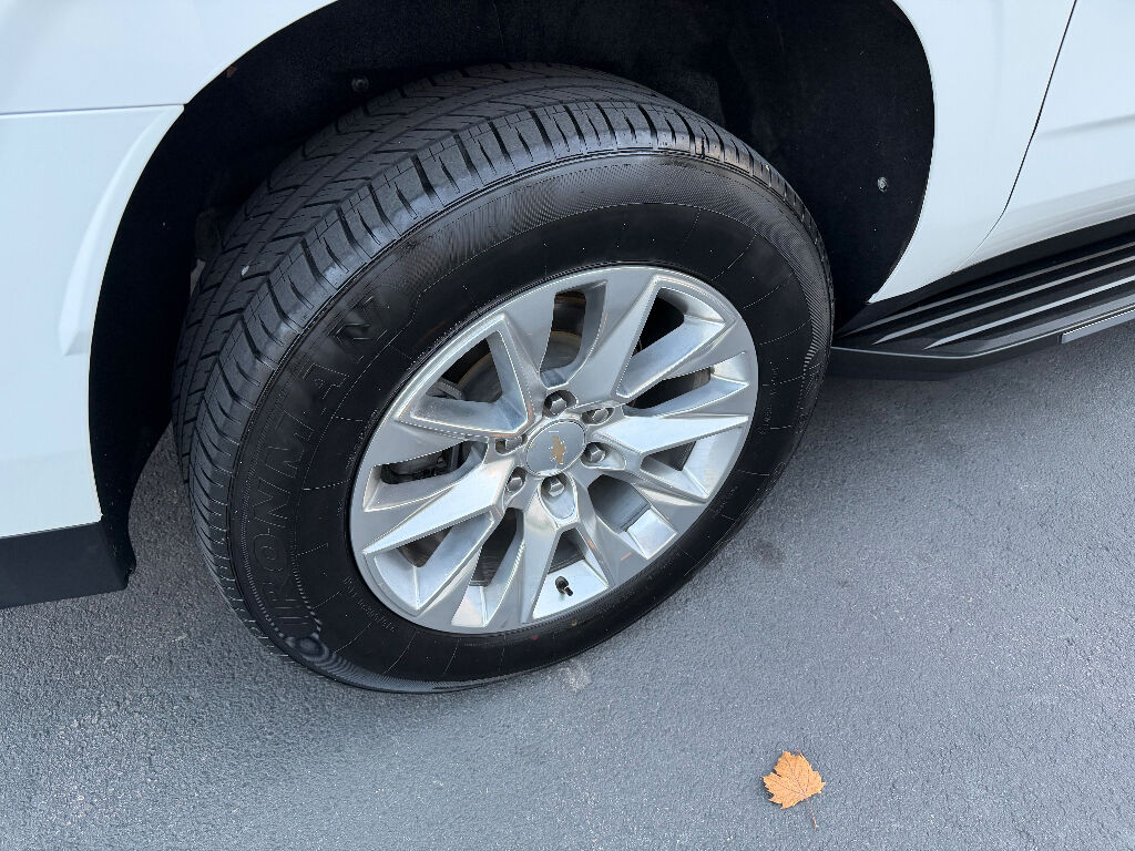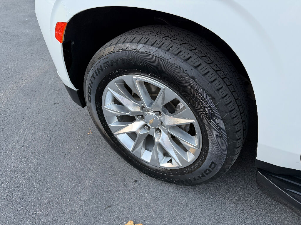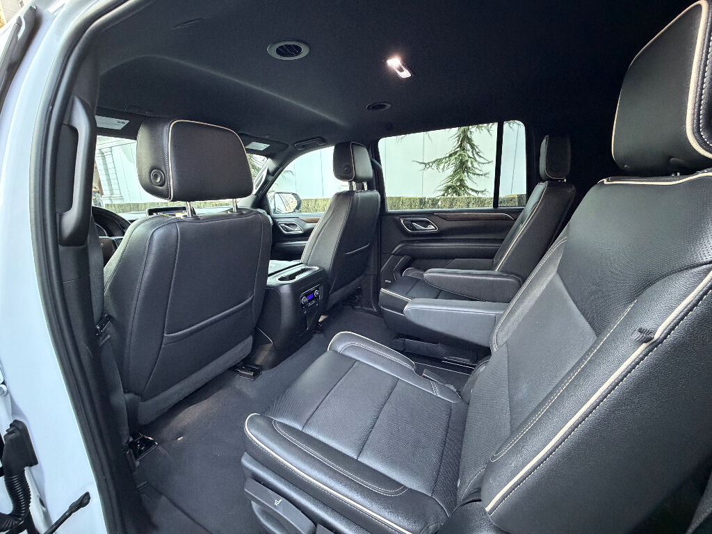 Preferred Equipment Group 1LZ: Bright Front and Rear Door Sill Plates; 20" X 9" Polished Aluminum Wheels; Memory Settings; Perforated Leather Seating Surfaces; Remote Start; 3rd Row 60/40 Power-Folding Split-Bench; Safety Alert Seat; Chrome Door Handles with Body-Color Strip; Hill Descent Control; Heated Steering Wheel; LED Daytime Running Lamps; Rear Cross Traffic Alert; Driver and Front Outboard Passenger Airbags; Heated Driver and Front Passenger Seats; Wireless Charging; Front Bucket Seats; Universal Home Remote; Color-Keyed Carpeting Floor Covering; Heated 2nd Row Outboard Seats; Hands-Free Rear Power Programmable Liftgate; Chevrolet Infotainment 3 Premium System Radio; 2-Speed Active Electronic Autotrac Transfer Case; 1st and 2nd Row Color-Keyed Carpeted Floor Mats; Enhanced Driver Information Center; Floor Console; Lane Change Alert with Side Blind Zone Alert; Chrome Mirror Caps; Dual Exhaust System; SiriusXM Radio with 360L; Heated and Ventilated Driver and Front Passenger Seats; Wrapped Steering Wheel; Power Tilt and Telescopic Steering Column; Bose 10-Speaker Surround with CenterPoint; Magnetic Ride Control Suspension; Infotainment Display; Auto-Dimming Inside Rearview Mirror; Power Release 2nd Row Bucket Seats; Outside Heated Power-Adjustable Mirrors; 275/60R20SL All-Season Blackwall Tires,Apple CarPlay/Android Auto smart device wireless mirroring,Wi-Fi Hotspot capable mobile hotspot internet access,Integrated navigation system with voice activation,Real-time traffic,OnStar and Chevrolet connected services capable vehicle integrated emergency SOS system,Bluetooth handsfree wireless device connectivity,Forward Automatic Braking forward collision mitigation,Front Pedestrian Braking,HD Rear Vision Camera rear mounted camera,Lane Keep Assist with Lane Departure Warning,Brake assist system,Rear Cross Traffic Alert collision warning,Teen Driver restricted driving mode/alerts,Vehicle tracker with vehicle slowdown,Gauge cluster display size: 12.00,Lane Change Alert with Side Blind Zone Alert blind spot warning,Following Distance Indicator,IntelliBeam auto high-beam headlights,Immobilizer,Cruise control with steering wheel mounted controls,Power liftgate rear cargo door,Keyfob remote start,Front wireless smart device charging,Alexa Built-In/Google Assistant built-in virtual assistant,Smart key with hands-free access and push button start,Front windshield solar coating,Smart device remote start,Push-button,Proximity cargo area access release,Full gauge cluster screen,Power fold into floor third-row seat,Ventilated driver and front passenger seats,Heated steering wheel,Heated driver and front passenger seats,Heated rear seats,Leather front seat upholstery,Fixed third-row seats,Driver seat power reclining, lumbar support, cushion tilt, fore/aft control and height adjustable control,Dual-zone front climate control,Rear climate control system with separate controls,Second-row bucket seats,Primary monitor touchscreen,Bluetooth wireless audio streaming,Bose speakers,Autotrac part and full-time 4WD,EcoTec3 5.3L V-8 gasoline direct injection, variable valve control, regular unleaded, engine with cylinder deactivation and 355HP,EcoTec3 5.3L V-8,Magnetorheological shock absorbers,Hitch Guidance vehicle to trailer hitching assist,Trailer sway control