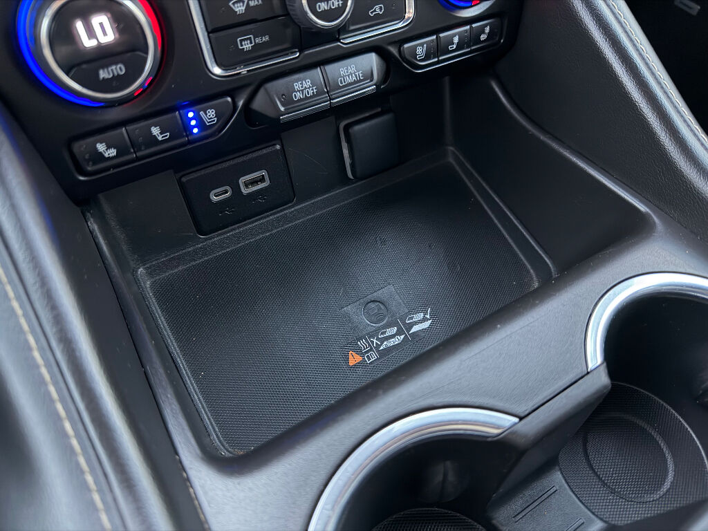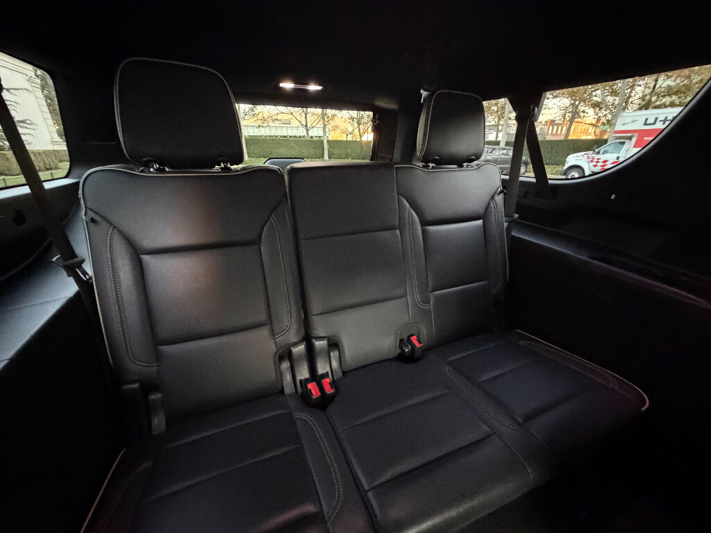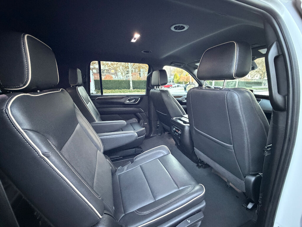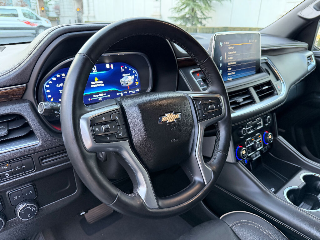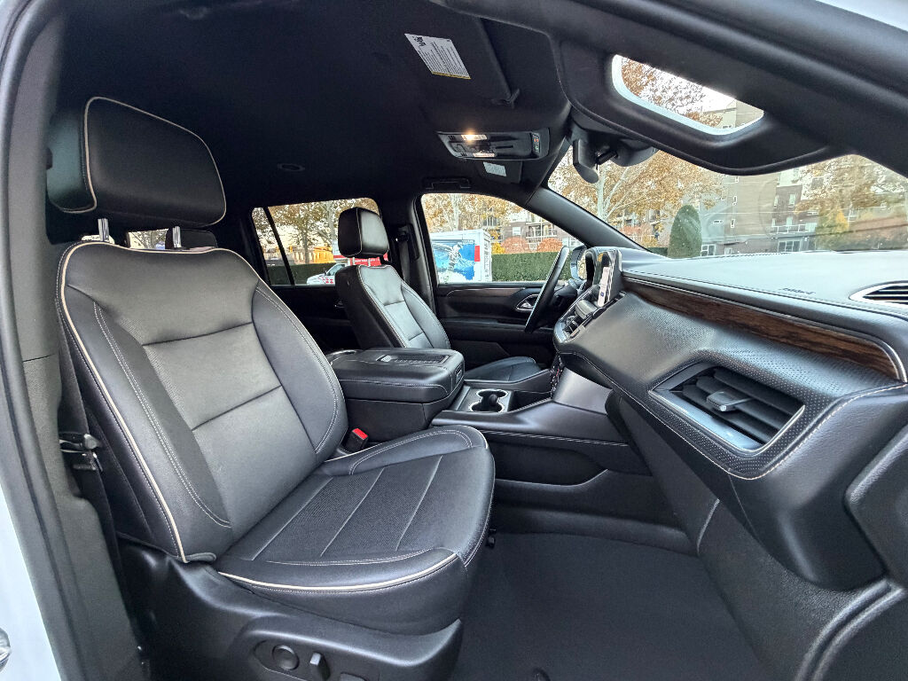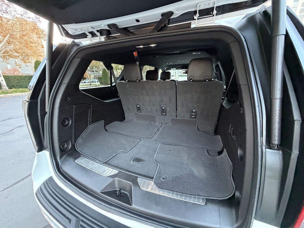 Preferred Equipment Group 1LZ: Bright Front and Rear Door Sill Plates; 20" X 9" Polished Aluminum Wheels; Memory Settings; Perforated Leather Seating Surfaces; Remote Start; 3rd Row 60/40 Power-Folding Split-Bench; Safety Alert Seat; Chrome Door Handles with Body-Color Strip; Hill Descent Control; Heated Steering Wheel; LED Daytime Running Lamps; Rear Cross Traffic Alert; Driver and Front Outboard Passenger Airbags; Heated Driver and Front Passenger Seats; Wireless Charging; Front Bucket Seats; Universal Home Remote; Color-Keyed Carpeting Floor Covering; Heated 2nd Row Outboard Seats; Hands-Free Rear Power Programmable Liftgate; Chevrolet Infotainment 3 Premium System Radio; 2-Speed Active Electronic Autotrac Transfer Case; 1st and 2nd Row Color-Keyed Carpeted Floor Mats; Enhanced Driver Information Center; Floor Console; Lane Change Alert with Side Blind Zone Alert; Chrome Mirror Caps; Dual Exhaust System; SiriusXM Radio with 360L; Heated and Ventilated Driver and Front Passenger Seats; Wrapped Steering Wheel; Power Tilt and Telescopic Steering Column; Bose 10-Speaker Surround with CenterPoint; Magnetic Ride Control Suspension; Infotainment Display; Auto-Dimming Inside Rearview Mirror; Power Release 2nd Row Bucket Seats; Outside Heated Power-Adjustable Mirrors; 275/60R20SL All-Season Blackwall Tires,Apple CarPlay/Android Auto smart device wireless mirroring,Wi-Fi Hotspot capable mobile hotspot internet access,Integrated navigation system with voice activation,Real-time traffic,OnStar and Chevrolet connected services capable vehicle integrated emergency SOS system,Bluetooth handsfree wireless device connectivity,Forward Automatic Braking forward collision mitigation,Front Pedestrian Braking,HD Rear Vision Camera rear mounted camera,Lane Keep Assist with Lane Departure Warning,Brake assist system,Rear Cross Traffic Alert collision warning,Teen Driver restricted driving mode/alerts,Vehicle tracker with vehicle slowdown,Gauge cluster display size: 12.00,Lane Change Alert with Side Blind Zone Alert blind spot warning,Following Distance Indicator,IntelliBeam auto high-beam headlights,Immobilizer,Cruise control with steering wheel mounted controls,Power liftgate rear cargo door,Keyfob remote start,Front wireless smart device charging,Alexa Built-In/Google Assistant built-in virtual assistant,Smart key with hands-free access and push button start,Front windshield solar coating,Smart device remote start,Push-button,Proximity cargo area access release,Full gauge cluster screen,Power fold into floor third-row seat,Ventilated driver and front passenger seats,Heated steering wheel,Heated driver and front passenger seats,Heated rear seats,Leather front seat upholstery,Fixed third-row seats,Driver seat power reclining, lumbar support, cushion tilt, fore/aft control and height adjustable control,Dual-zone front climate control,Rear climate control system with separate controls,Second-row bucket seats,Primary monitor touchscreen,Bluetooth wireless audio streaming,Bose speakers,Autotrac part and full-time 4WD,EcoTec3 5.3L V-8 gasoline direct injection, variable valve control, regular unleaded, engine with cylinder deactivation and 355HP,EcoTec3 5.3L V-8,Magnetorheological shock absorbers,Hitch Guidance vehicle to trailer hitching assist,Trailer sway control