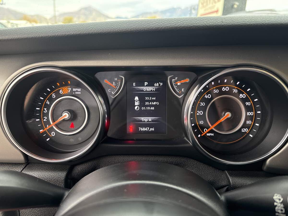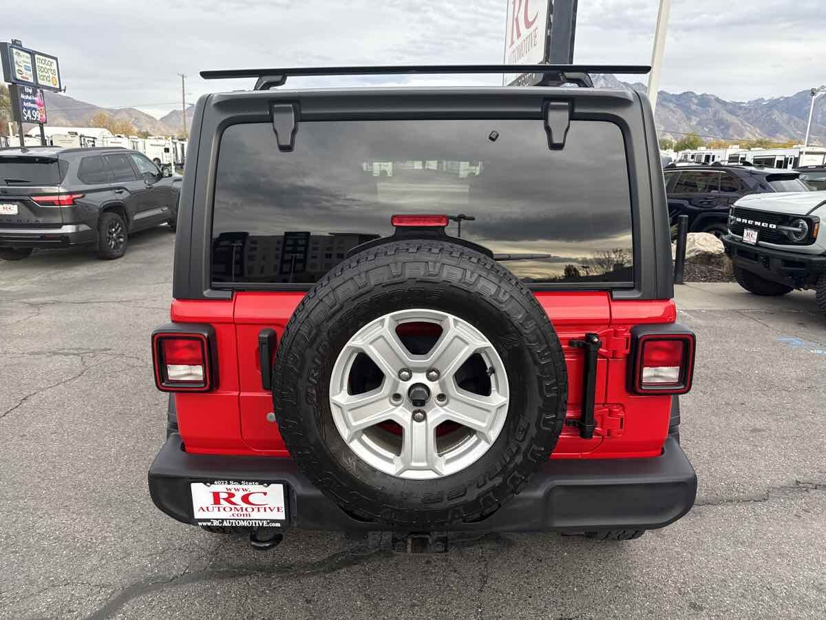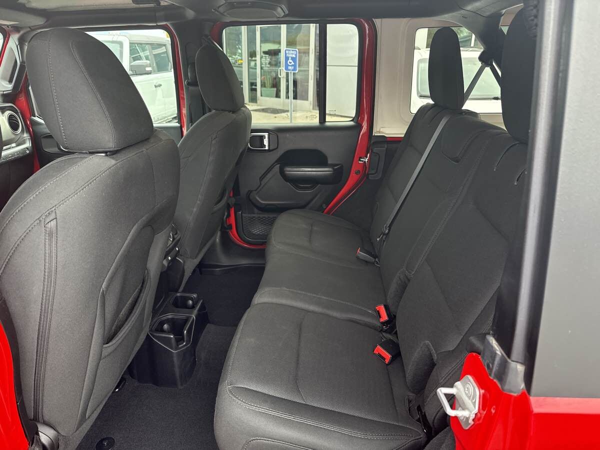 CLEAN VEHICLE HISTORY- BLUETOOTH HANDSFREE- LOCAL TRADE-IN- REAR BACK UP CAMERA- TOW PACKAGE- AFTERMARKET HEAD UNIT- HEATED SEATS- 8 Speakers- Air Conditioning- AM/FM radio- Automatic Headlamps- Deep Tint Sunscreen Windows- Front 1-Touch Down Power Windows- Leather Wrapped Steering Wheel- Normal Duty Suspension- Power Heated Mirrors- Quick Order Package 28S Sport S- Radio data system- Radio: Uconnect 3 w/5" Display- Rear Window Defroster- Remote Keyless Entry- Security Alarm- Speed control- Speed Sensitive Power Locks- Sun Visors w/Illuminated Vanity Mirrors- Traction control- Wheels: 17" x 7.5" Tech Silver Aluminum. Clean CARFAX. 2019 Jeep Wrangler Unlimited Sport S Firecracker Red Clearcoat 4WD 8-Speed Automatic 2.0L I4 DOHC