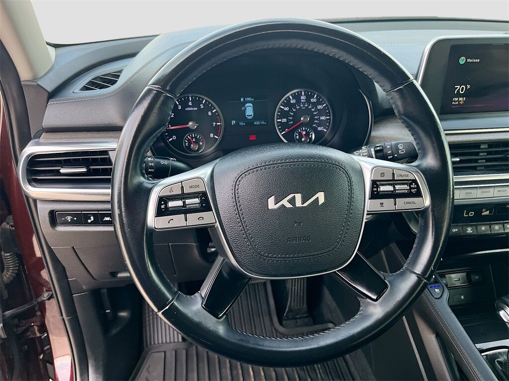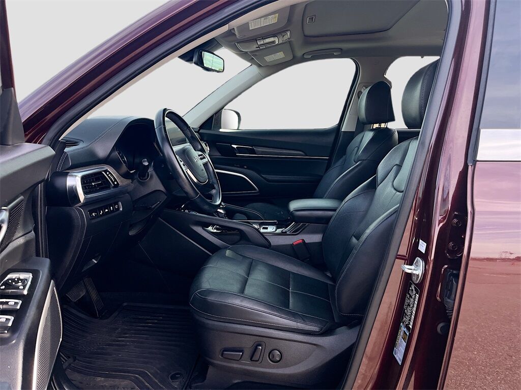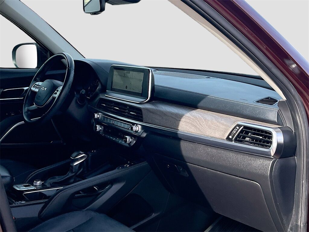 Discover the 2022 Kia Telluride EX FWD at AutoSavvy Las Vegas, a standout in the SUV market with its stunning Sangria exterior and luxurious black leather interior. This Telluride is powered by a LAMBDA II 3.8L V-6 engine, delivering a robust 291 horsepower, paired with an 8-speed automatic transmission for smooth driving. With only 43,192 miles, this vehicle combines low mileage with high performance, offering 26 MPG on the highway. Enjoy premium features like a sunroof, heated and ventilated front seats, and a spacious cabin with third-row seating, making it perfect for family adventures. Stay connected with the integrated navigation system, Apple CarPlay, and Android Auto, all accessible via a sleek 10.2-inch touchscreen display. The current status of the title is branded, but AutoSavvy Las Vegas ensures complete transparency and quality with every vehicle. This Telluride is Savvy Certified, adhering to our rigorous standards for performance and reliability. Enjoy peace of mind with our 4-month/4,500 Mile Warranty, ensuring your investment is safeguarded. Visit AutoSavvy Las Vegas today to explore the blend of style, technology, and comfort with the 2022 Kia Telluride EX FWD.