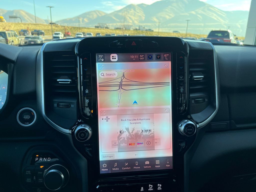 This model features a hands-free Bluetooth phone system. It comes equipped with Android Auto for seamless smartphone integration on the road. This vehicle is equipped with the latest generation of XM/Sirius Radio. An off-road package is installed on the vehicle so you are ready for your four-wheeling best. Keep your hands warm all winter with a heated steering wheel in this 1/2 ton pickup . Start this 1/2 ton pickup from inside with remote start. This 1/2 ton pickup has auto-adjust speed for safe following. The Ram 1500 keeps you comfortable with Auto Climate. Apple CarPlay: Seamless smartphone integration for this unit - stay connected and entertained on the go! This unit's Forward Collision Warning feature alerts drivers to potential front-end collisions. The installed navigation system will keep you on the right path. Protect the vehicle from unwanted accidents with a cutting edge backup camera system. Maintaining a stable interior temperature in this 1/2 ton pickup is easy with the climate control system.