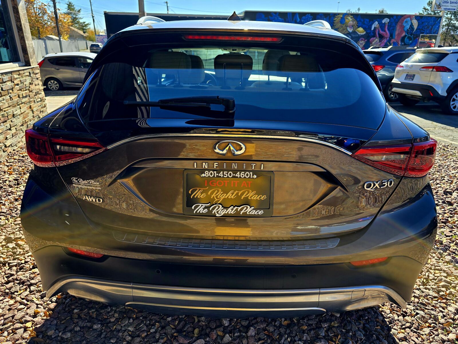 A MUST SEE, SUPER CLEAN 2019 INFINITI QX30 (AWD) LUXURY PACKAGE WITH ONLY 69000 LOW MILES AND EQUIPPED WITH NAVIGATION SYSTEM, 360 CAMERAS, PANAROMIC SUNROOF, POWER SEATS, 2 TONE CLOTH AND LEATHER SEATS, HEATED SEAT, POWER WINDOW, MIROOR AND DOOR LOCK, ADAPTIVE CRUISE CONTROL, ICE COLD AC, AM FM, AUX & BLUETOOTH, USB, APPLE CAR PLAY, MEMORY SEAT, BLIND SPOT MONITOR, LANE DEPARTURE SYSTEM, COLLISION WARNING, LED HEADLIGHTS, AUTO SHUT OFF, ALLOY WHEELS WITH NEW TIRES, LUGGAGE RACK AND MUCH MORE...PLEASE CALL 801-450-4601 OR VISIT OUR WEBSITE AT www.therightplaceauto.com FOR MORE INFO THANKS