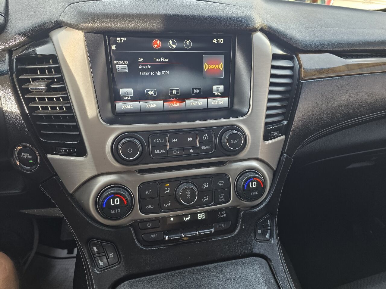 Engine- 6.2L EcoTec3 V8 with Active Fuel Management- Direct Injection and Variable Valve Timing- includes aluminum block construction (420 hp [313 kW] @ 5600 rpm- 460 lb-ft of torque [624 N-m] @ 4100 rpm),Rear axle- 3.23,Suspension Package- Magnetic Ride Control,Keyless start- push button start,Air cleaner- high-capacity,Differential- heavy-duty locking rear,Transfer case- active- 2-speed electronic Autotrac with rotary controls- includes neutral position for dinghy towing. (Requires 4WD.),Alternator- 170 amps,4-wheel drive,Trailering equipment- heavy-duty includes trailering hitch platform- 7-wire harness with independent fused trailering circuits mated to a 7-way sealed connector and 2"" trailering receiver,Trailer brake controller- integrated,Cooling- auxiliary external transmission oil cooler- heavy-duty air-to-oil,Cooling- external engine oil cooler- heavy-duty air-to-oil integral to driver side of radiator,GVWR- 7300 lbs. (3311 kg) (Not available on 2WD model.),Suspension- front coil-over-shock with stabilizer bar,Suspension- rear multi-link with coil springs,Steering- power-,Powertrain grade braking,Brakes- VAC power- with VSES,Exhaust- aluminized stainless-steel muffler and tailpipe,Tools- mechanical jack and wheel wrench stored in rear quarter trim,Tire carrier- lockable outside spare winch-type mounted under frame at rear,Moldings- body-color body-side with bright inserts,Headlamps- projector beam- high intensity discharge,Fog lamps,Mirrors- outside heated power-adjustable- power-folding and driver-side auto-dimming- body-color with integrated turn signal indicators and ground illumination.,Wipers- front rain-sensing- intermittent,Wiper- rear,Audio system feature- Bose Centerpoint Surround Sound premium 10-speaker system,Audio system feature- CD player (Replaced by (U42) rear seat entertainment system when (U42) is ordered.),Antenna- integral in rear quarter glass,Wireless charging (Only on vehicles built after 10-5-14. Not compatible with all phones. Compliant batteries include QI and PMA technologies. Reference Mobile devices manual to confirm what type of battery it uses.),Active Noise Cancellation,NavTraffic is available in over 130 markets and works with your vehicle's navigation system to give you detailed traffic data right when you need it most - while you're driving. You'll avoid traffic tie-ups- save time and gas by getting alternate routes- and- in some cases- receive traffic speed and drive-time information. Plus- you can use NavTraffic at the same time you're enjoying SiriusXM Satellite Radio. You'll find that once you start using NavTraffic- you won't want to drive without it. (Includes 90 days of service. Included and only available with (IO6) Audio system with navigation. Requires a subscription sold separately by SiriusXM after trial period which is continuous until you call SiriusXM to cancel. Available only in select markets. For more information- see siriusxm.com/navtraffic.),Seats- heated outboard second row,Cargo net,Floor covering- color-keyed carpeting,Steering column- power tilt and telescopic,Display- driver- 8"" customizable,Instrumentation- analog with speedometer- odometer with trip odometer- fuel level- voltmeter- engine temperature- oil pressure- tachometer- compass and outside temperature gauge,Windows- power all express down- front express up,Universal Home Remote includes garage door opener- programmable,Climate control- tri-zone automatic with individual climate settings for driver- right-front passenger and rear passengers,Defogger- rear-window electric,Theft-deterrent system- vehicle- PASS-Key III,Power outlet- 110-volt- 1.1 Amp- 150 Watt,Power outlets- 5 auxiliary- 12-volt includes outlets in the instrument panel- console- back of the console- 1 in 3rd row and 1 in the cargo area.,Mirror- inside rearview auto-dimming,Assist handles- all seats,Lighting- interior with dome light driver- and passenger-side door switch with delayed entry feature- cargo lights- door handle or Remote Keyless Entry-activated illuminated entry and map lights in front and second seat positions,Lighting- interior includes courtesy lighting with theater dimming- lighting for front and rear door handles- front and rear passenger footwells and door storage area,Brakes- 4-wheel antilock- 4-wheel disc,Hill Start Assist brakes,Daytime Running Lamps- with automatic exterior lamp control,Air bags- frontal and side-impact for driver and front passenger driver inboard seat-mounted side-impact and head curtain side-impact for all rows in outboard seating positions (Always use safety belts and child restraints. Children are safer when properly secured in a rear seat in the appropriate child restraint. See the Owner's Manual for more information.),Safety Alert Seat (Included and only available with (Y65) Driver Alert Package.),Passenger Sensing System sensor indicator inflatable restraint- front passenger/child presence detector (Always use safety belts and child restraints. Children are safer when properly secured in a rear seat in the appropriate child restraint. See the Owner's Manual for more information.),LATCH system (Lower Anchors and Top tethers for Children)- for child safety seats; lower anchors and top tethers located in all second row seating positions- top tethers located in third row seating positions,Parking assist front and rear,Rear Cross-Traffic Alert,Rear Vision Camera,Side Blind Zone Alert with Lane Change Alert,Tire Pressure Monitoring System (does not apply to spare tire)