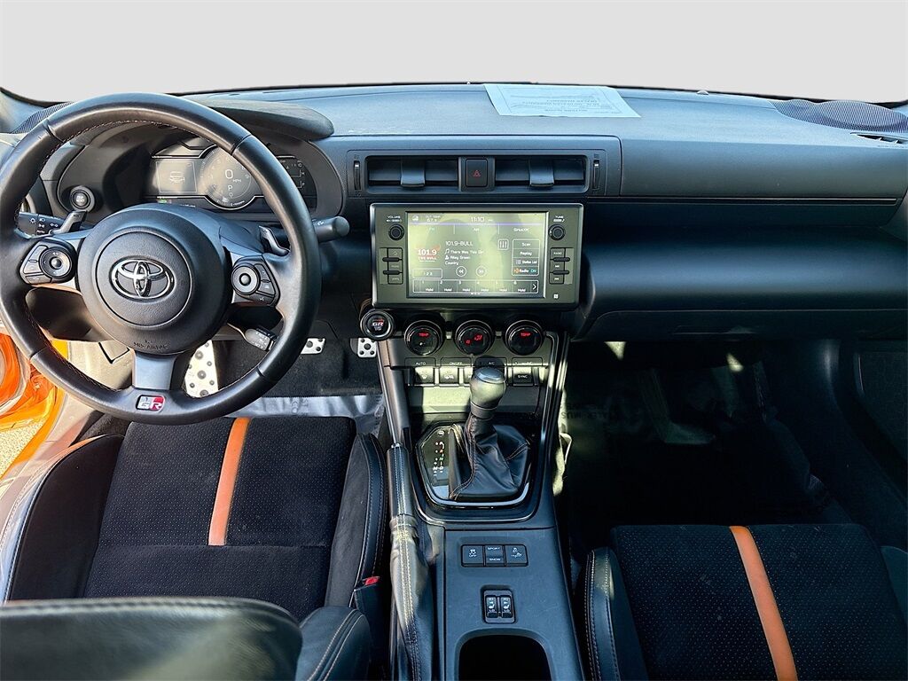 Explore the 2023 Toyota GR86 10th Anniversary Special Edition at AutoSavvy Boise, a stunning blend of performance and style. This captivating coupe, finished in the eye-catching Solar Shift exterior, boasts a spirited 2.4L H-4 engine producing 228 horsepower, paired with a smooth 6-speed automatic transmission. With only 48,094 miles, this GR86 offers both reliability and exhilarating driving experiences. Inside, the black interior is adorned with Ultrasuede simulated suede and leather upholstery, providing a luxurious touch. Enjoy advanced tech features like Apple CarPlay and Android Auto, an 8-inch touchscreen display, and a premium audio system with 8 speakers. Safety is paramount with adaptive cruise control, lane departure warning, and a rearview camera, ensuring peace of mind on every journey. This 2023 Toyota GR86 comes with a branded title, underscoring AutoSavvy Boise's commitment to transparency and quality. As a Savvy Certified vehicle, it includes our comprehensive 4-month/4,500 Mile Warranty, providing added confidence in your purchase. Each vehicle at AutoSavvy undergoes a meticulous inspection to ensure top-notch performance and reliability. Visit AutoSavvy Boise today to experience the perfect blend of power, technology, and style in this exceptional GR86. Whether you're navigating city streets or hitting the open road, this vehicle is designed to elevate your driving adventures with its blend of innovation and driving dynamics.