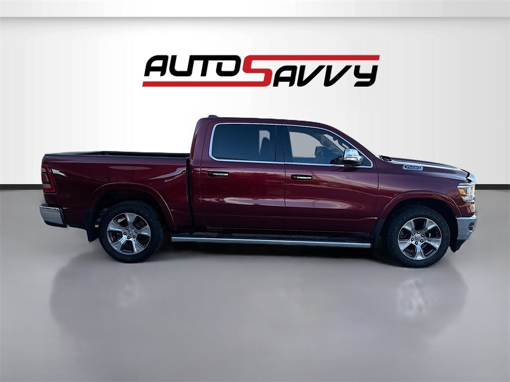 Discover the 2019 RAM 1500 Laramie Crew Cab 4x4 at AutoSavvy Windsor, a powerful and luxurious pickup ready for any adventure. This Delmonico Red Pearlcoat beauty is driven by a robust HEMI 5.7L V-8 engine with 395 horsepower, paired with an 8-speed automatic transmission for a smooth ride. With just 77,849 miles, this truck combines power and efficiency, achieving up to 21 MPG on the highway. Enjoy the comfort of leather front seats, dual climate control, and a premium 10-speaker audio system. Stay connected with the 8.4-inch touchscreen featuring Apple CarPlay and Android Auto. Additional highlights include a backup camera, blind spot monitor, and heated steering wheel for enhanced safety and convenience. The current status of the title is branded, reflecting AutoSavvy Windsor's dedication to transparency and quality. This RAM 1500 is Savvy Certified, having passed a thorough inspection to meet high safety and performance standards. Benefit from the added assurance of our 4-month/4,500 Mile Warranty, ensuring exceptional reliability and value. Visit AutoSavvy Windsor today to explore this outstanding RAM 1500 and elevate your driving experience with its blend of cutting-edge technology, luxury, and rugged capability.