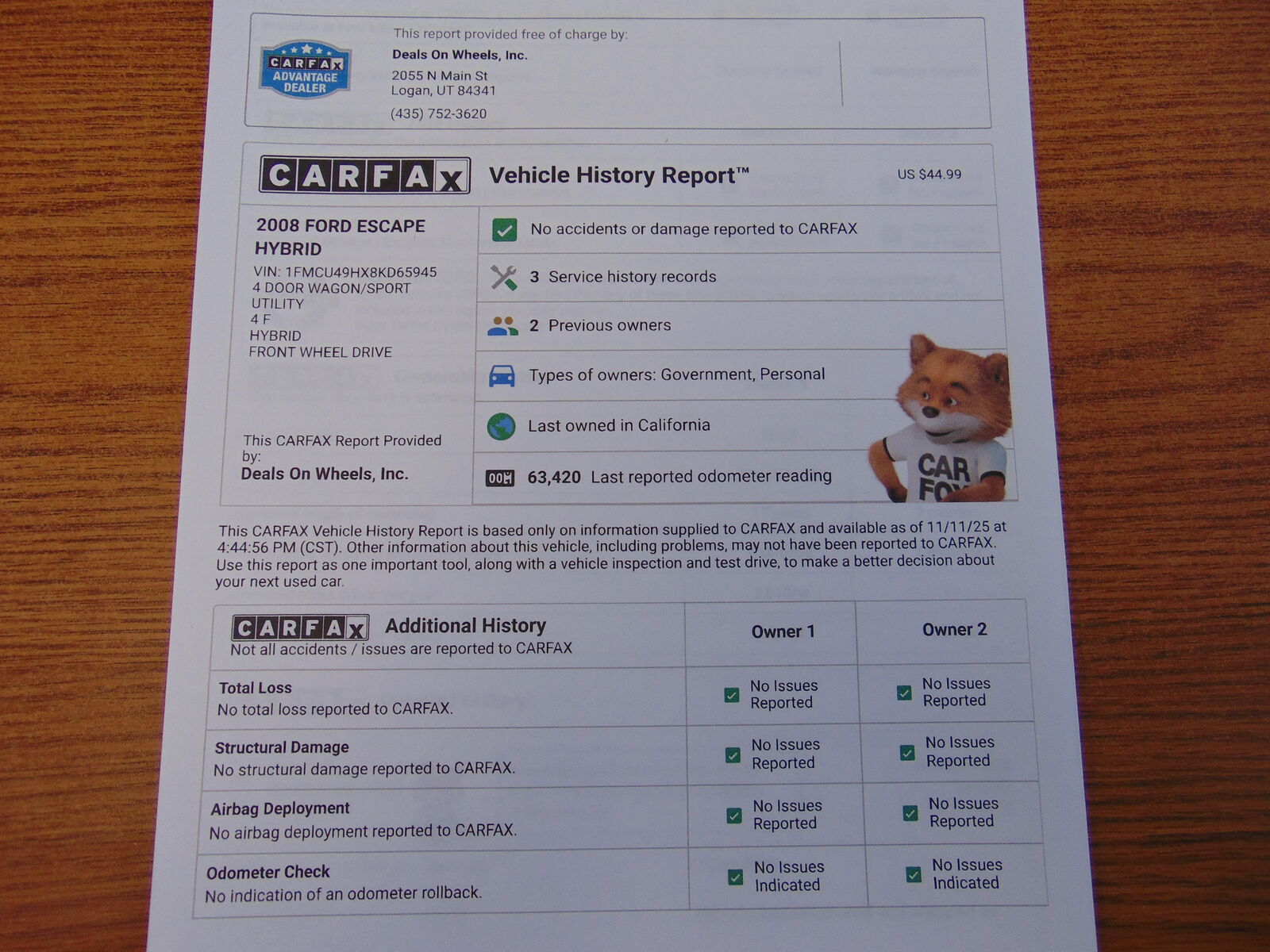 2008 FORD ESCAPE HYBRID, FRONT WHEEL DRIVE ONLY, 2.3L 4CYL, AUTOMATIC, 72,712 MILES, MEDIUM GRAY CLOTH INTERIOR, 5 PASSENGER SEATING, DRIVERS SIDE POWER SEAT, POWER WINDOWS, LOCKS, AND MIRRORS, TILT, CRUISE, DUAL CLIMATE CONTROL, CD PLAYER WITH AUX PORT AND STEERING WHEEL AUDIO CONTROLS, FACTORY ALLOY WHEELS, LUGGAGE RACK, FOG LIGHTS. NON-SMOKER. CLEAN CARFAX WITH NO ACCIDENTS AND 2 OWNERS FROM CALIFORNIA. CLEAN TITLE AND ACTUAL MILES. THIS FORD IS IN EXCELLENT CONDITION!