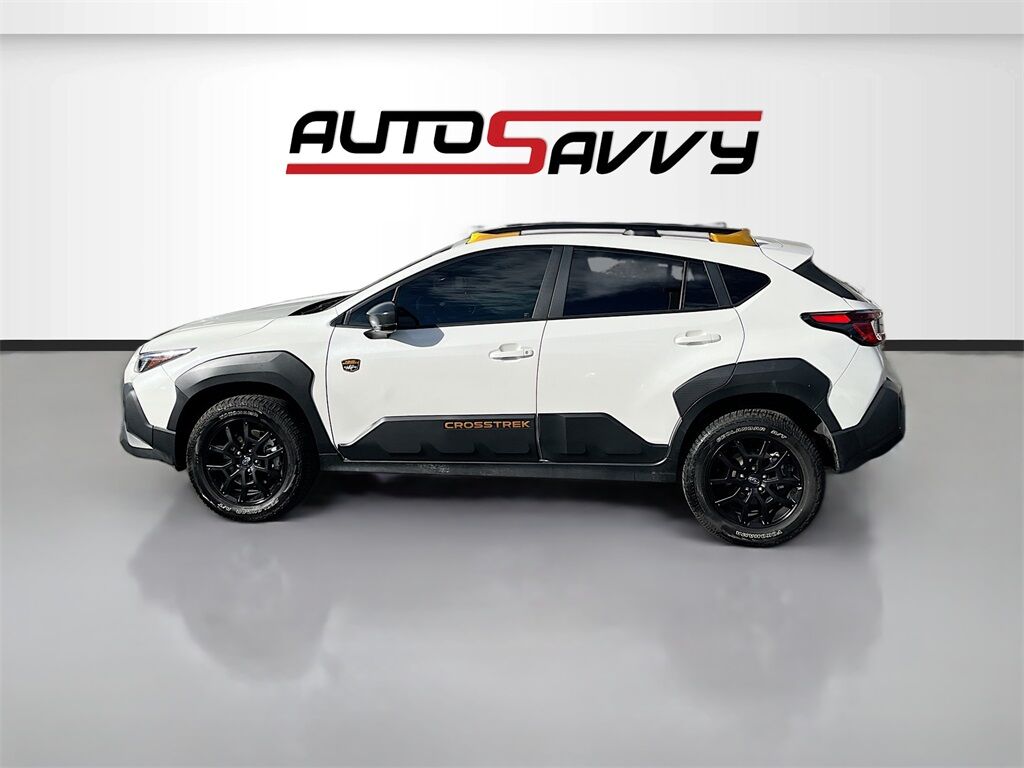 Discover the 2024 Subaru Crosstrek Wilderness AWD at AutoSavvy Draper, where adventure meets comfort in this rugged yet refined sport utility vehicle. With only 8,336 miles, this Subaru is practically new and ready for any journey. Its robust 2.5L H-4 engine delivers 182 horsepower, paired with a Lineartronic CVT transmission for smooth and efficient driving. The Crystal White Pearl exterior complements the Wilderness StarTex leatherette interior, offering a stylish and durable cabin. Enjoy premium features like adaptive cruise control, Apple CarPlay, Android Auto, and a 11.6-inch touchscreen display for seamless connectivity. The Subaru's all-wheel drive and high ground clearance make it ideal for off-road adventures, while heated front seats and dual climate control ensure comfort in any weather. This 2024 Subaru Crosstrek comes with a branded title, reflecting AutoSavvy Draper's commitment to providing high-quality vehicles at exceptional value. Despite its branded status, this vehicle has undergone rigorous inspection to ensure top-notch reliability and performance. As a Savvy Certified vehicle, it includes our 4-month/4,500 Mile Warranty, offering peace of mind with your purchase. Visit AutoSavvy Draper today to experience the perfect blend of adventure, technology, and reliability in the Subaru Crosstrek Wilderness AWD. Join a community of savvy buyers who trust AutoSavvy for their automotive needs and enjoy a superior buying experience where quality meets value.