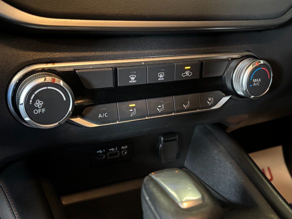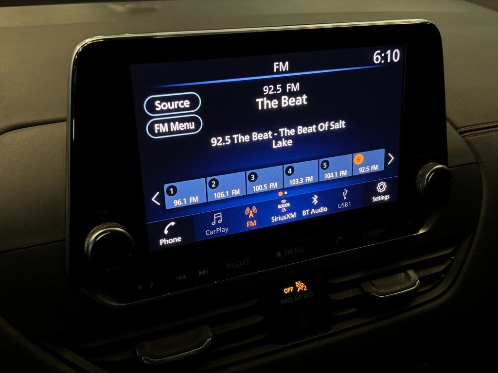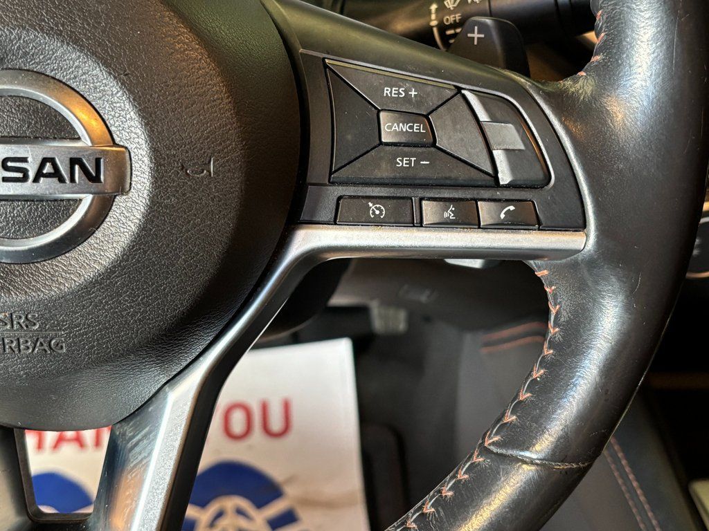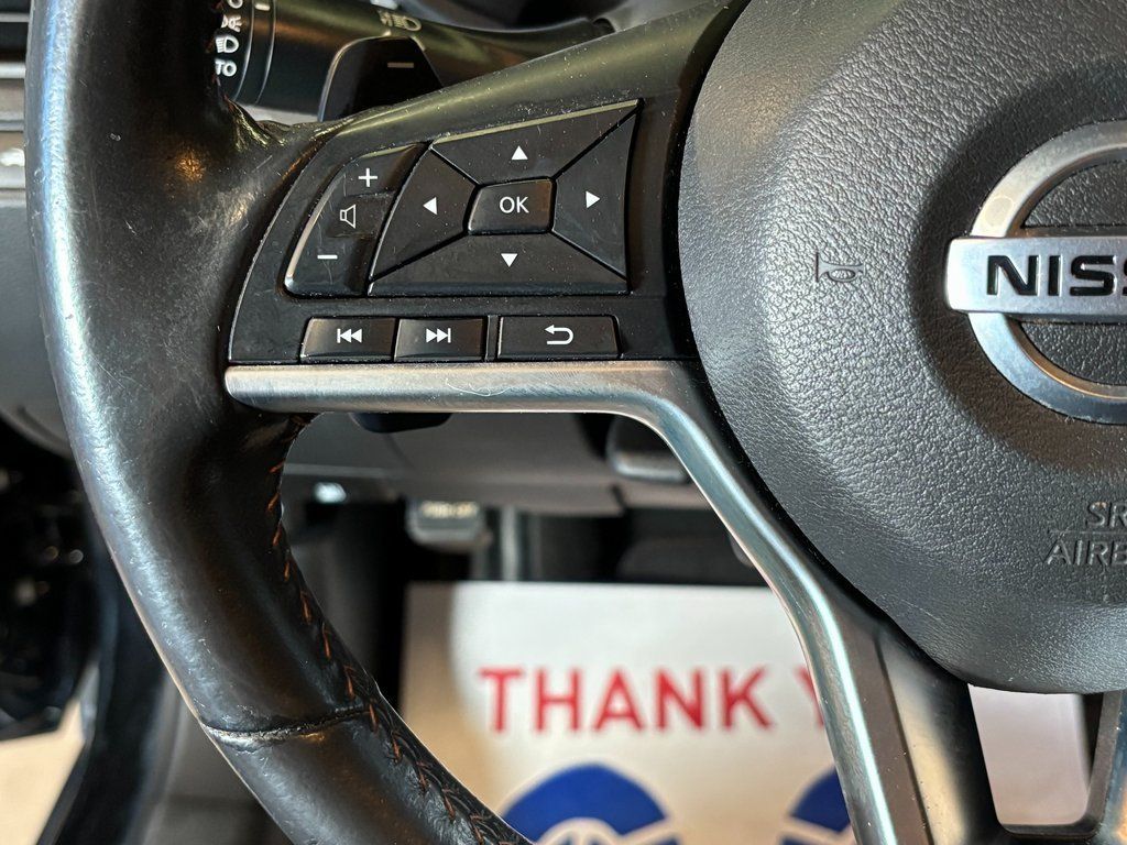 CVT with Xtronic, 4-Wheel Disc Brakes, 6 Speakers, ABS brakes, Air Conditioning, AM/FM radio: SiriusXM, Auto High-beam Headlights, Blind Spot Warning, Brake assist, Delay-off headlights, Dual front impact airbags, Dual front side impact airbags, Electronic Stability Control, Four wheel independent suspension, Front anti-roll bar, Front Sport Bucket Seats, Fully automatic headlights, Knee airbag, NissanConnect featuring Apple CarPlay and Android Auto, Occupant sensing airbag, Overhead airbag, Panic alarm, Power driver seat, Power steering, Power windows, Rear anti-roll bar, Rear Parking Sensors, Rear side impact airbag, Rear window defroster, Remote keyless entry, Security system, Speed control, Speed-sensing steering, Split folding rear seat, Steering wheel mounted audio controls, TPMS Sensors, Traction control, Wheels: 19'' Machined Alloy.