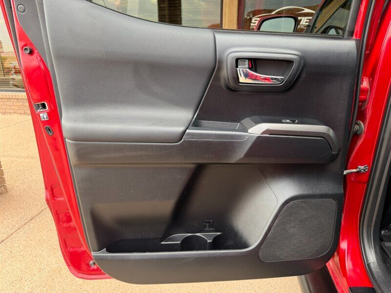 Introducing the 2019 Toyota Tacoma TRD Off-Road, a rugged and capable mid-size truck that’s ready to tackle any adventure you throw its way. With a vibrant Barcelona Red Metallic exterior and a sleek black interior, this Tacoma is not just about looks; it’s designed for performance and comfort.