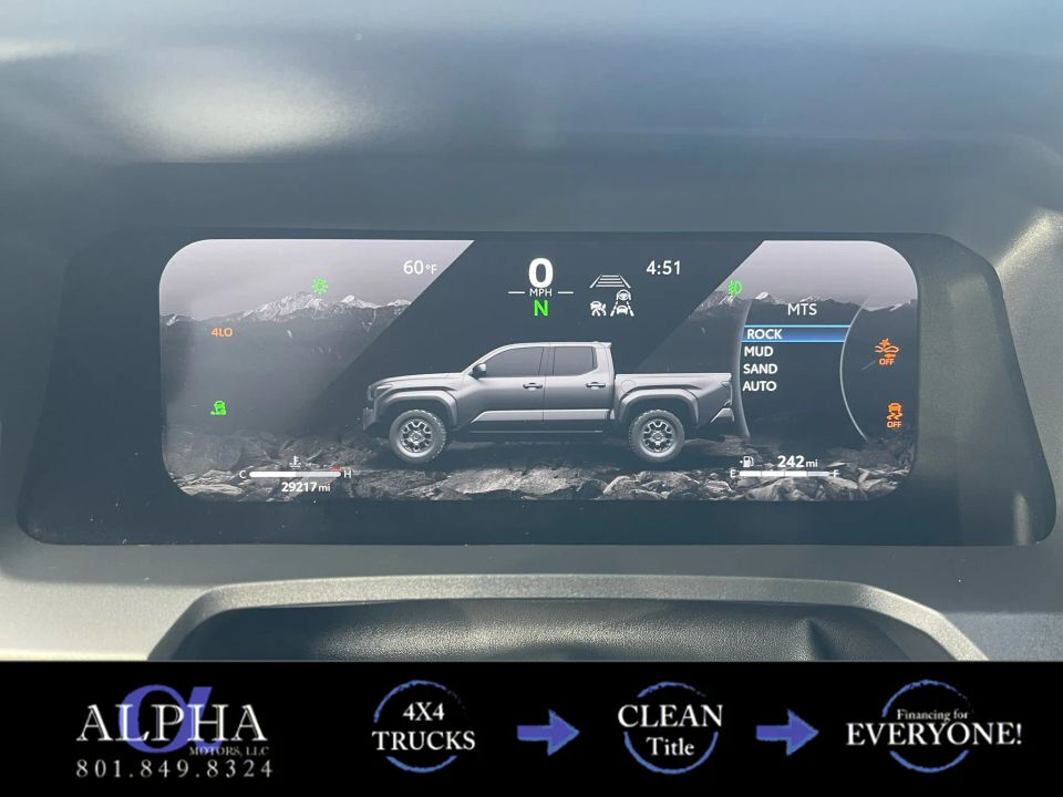 Featuring a brand-new leveling kit, new 17� off-road rims, and aggressive 285 Falken tires, this Tacoma has a bold, capable stance that�s ready for dirt, gravel, or pavement. The TRD Off-Road package adds rugged components like Bilstein shocks, multi-terrain select, crawl control, skid plates, and locking rear differential, giving you full confidence on any terrain.