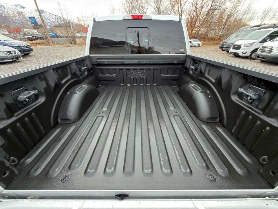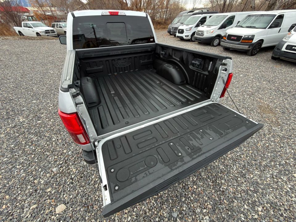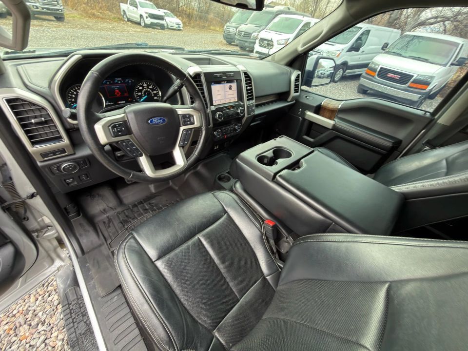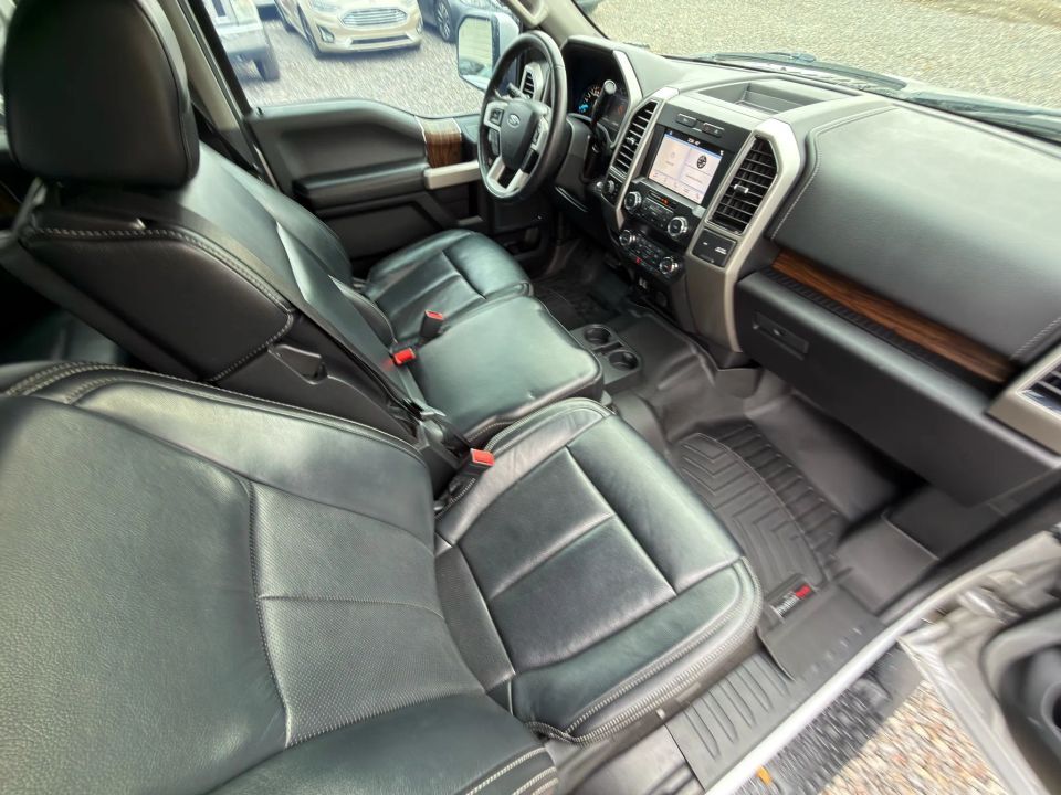 Inside, the F-150 Lariat offers a premium driving experience with leather-trimmed bucket seats, dual-zone automatic climate control, and SYNC 3 infotainment featuring Apple CarPlay, Android Auto, and 4G LTE Wi-Fi connectivity. Convenience features include push-button start, keyless entry, and a 110V/400W power outlet, adding practicality to comfort.