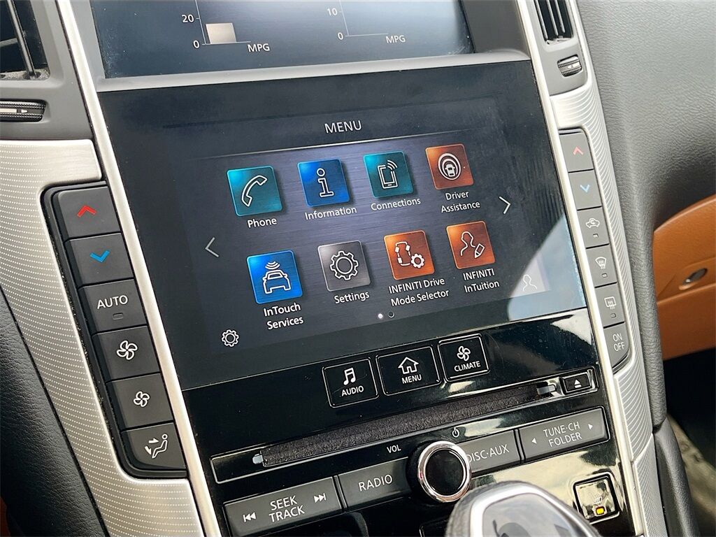 Discover the 2023 INFINITI Q50 LUXE AWD at AutoSavvy Lindon, a perfect blend of luxury, performance, and advanced technology. This Graphite Shadow sedan is powered by a formidable 3.0L V-6 twin-turbo engine, delivering an impressive 300 horsepower, ensuring a thrilling and smooth drive. With only 22,190 miles, this low-mileage vehicle offers exceptional reliability and efficiency, boasting a highway fuel economy of 27 MPG. The sophisticated Saddle Brown leather interior enhances comfort, while features like heated front seats, a heated steering wheel, and dual-zone climate control ensure a luxurious driving experience. Stay connected with the INFINITI InTouch Dual HD Display System, Apple CarPlay, Android Auto, and a premium Bose audio system for superior entertainment on the go. This 2023 INFINITI Q50 comes with a branded title, reflecting AutoSavvy's commitment to providing exceptional value without compromising quality. Each vehicle undergoes a meticulous inspection to meet rigorous safety and performance standards, ensuring peace of mind with every purchase. As a Savvy Certified vehicle, it is backed by our 4-month/4,500 Mile Warranty, offering additional assurance and support. AutoSavvy Lindon is renowned for offering high-quality, low-mileage vehicles with premium features at substantial savings. Join the community of savvy buyers who appreciate the unique benefits of purchasing from AutoSavvy. Visit AutoSavvy Lindon today to explore this outstanding INFINITI Q50 and experience the perfect blend of performance, luxury, and cutting-edge technology.