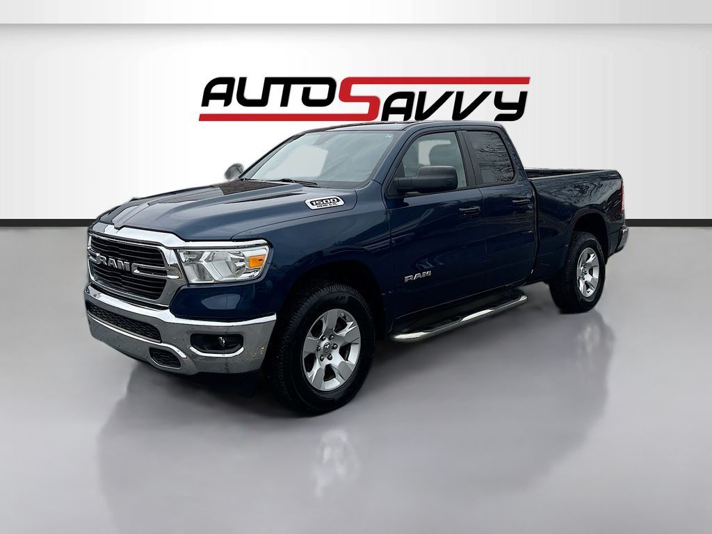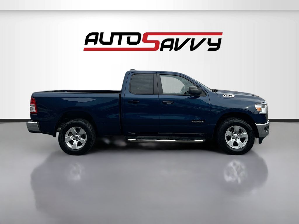 Discover the 2021 RAM 1500 Big Horn Quad Cab 4x4 at AutoSavvy Draper, a powerhouse of performance and style designed for those who demand more from their ride. This striking Patriot Blue Pearlcoat truck boasts a robust HEMI 5.7L V-8 engine with 395 horsepower, paired with an 8-speed automatic transmission for seamless power delivery. With only 37,180 miles, this vehicle offers longevity and reliability. Enjoy premium features like a spacious Quad Cab with cloth front seat upholstery, a user-friendly Uconnect system with a 5-inch display, and Bluetooth connectivity. The exterior is enhanced by chrome bumpers and 18-inch cast-aluminum wheels, while the interior ensures comfort with climate control and a leather-wrapped steering wheel. This 2021 RAM 1500 comes with a branded title, reflecting AutoSavvy Draper's commitment to providing high-quality vehicles at exceptional value. Despite its branded status, this truck has undergone a thorough inspection to ensure top-tier reliability and performance. As a Savvy Certified vehicle, it includes our 4-month/4,500 Mile Warranty, offering peace of mind with your purchase. Visit AutoSavvy Draper today to explore the perfect blend of power, technology, and comfort in the RAM 1500 Big Horn Quad Cab 4x4. Join a community of savvy buyers who trust AutoSavvy for their automotive needs and enjoy a superior buying experience where quality meets value.