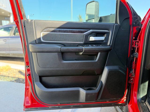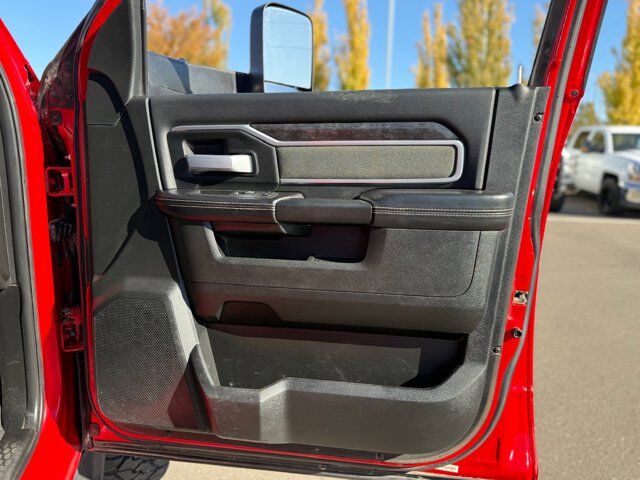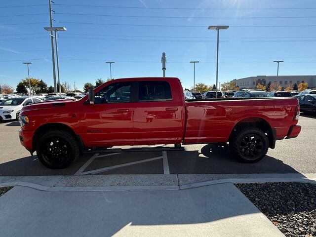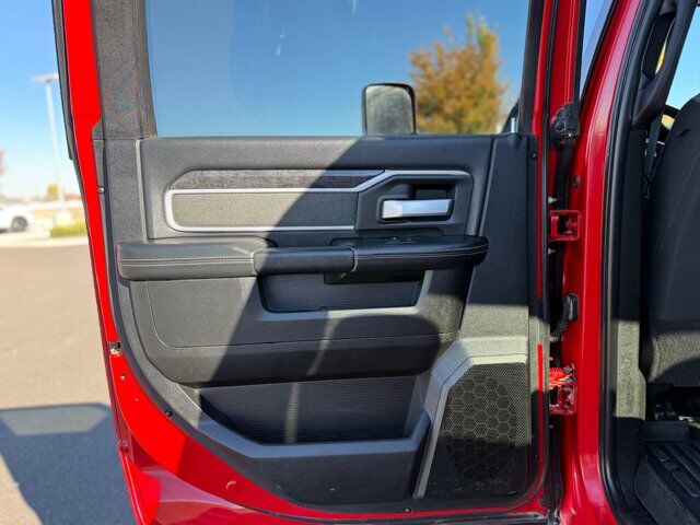 PARKSENSE FRONT/REAR PARK ASSIST SYSTEM,NIGHT EDITION -inc: Black Ram Head Tailgate Badge Black Headlamp Bezels Body Color Door Handles Black Wheel Center Hub Painted Front Bumper Painted Rear Bumper Grille-Gloss Black Nostrils/Molded in Color Black Black Exterior Truck Badging Body Color Grille Surround Black Interior Accents Black Tail Lamp Bezels ParkSense Front/Rear Park Assist System,PROTECTION GROUP -inc: Transfer Case Skid Plate Shield,NIGHT EDITION -inc: Black Ram Head Tailgate Badge Black Headlamp Bezels Body Color Door Handles Black Wheel Center Hub Painted Front Bumper Painted Rear Bumper Grille-Gloss Black Nostrils/Molded in Color Black Black Exterior Truck Badging Body Color Grille Surround Black Interior Accents Black Tail Lamp Bezels,ENGINE: 6.7L I6 CUMMINS HO TURBO DIESEL -inc: Selective Catalytic Reduction (Urea) Dual 730 Amp Maintenance Free Batteries Cummins Turbo Diesel Badge Heavy Duty Engine Cooling Supplemental Heater GVWR: 12 300 lbs Current Generation Engine Controller Diesel Exhaust Brake Capless Fuel Fill w/o Discriminator Distribution Services Tracking,50 GALLON FUEL TANK,BLACK PREMIUM CLOTH BUCKET SEATS -inc: Bucket Seats Power Adjust 8-Way Driver Seat Folding Flat Load Floor Storage Rear 60/40 Folding Seat Front Seat Back Map Pockets Power 2-Way Driver Lumbar Adjust Full Length Upgraded Floor Console,FRONT FOG LAMPS,TRANSMISSION: 6-SPEED AUTOMATIC AISIN AS69RC HD -inc: Transmission Oil Cooler Chrome Accent Shift Control,TIRES: LT285/60R20E OWL ON/OFF ROAD,WHEELS: 20 X 8.0 BLACK PAINTED ALUMINUM,RADIO: UCONNECT 5 NAV W/8.4 DISPLAY -inc: Google Android Auto Off-Road Information Pages Disassociated Touchscreen Display HD Radio Integrated Center Stack Radio For Details Visit DriveUconnect.com Air Conditioning ATC w/Dual Zone Control GPS Navigation SiriusXM w/360L All Radio Equipped Vehicles Connected Travel & Traffic Services All R1 High Radios Alexa Built-In,GVWR: 12 300 LBS,3.73 AXLE RATIO (STD),LEVEL A EQUIPMENT GROUP -inc: Locking Lower Glove Box Rear View Auto Dim Mirror Power Adjustable Pedals Leather Wrapped Steering Wheel Rear Dome w/On/Off Switch Lamp Front Fog Lamps Steering Wheel Mounted Audio Controls Dual Glove Boxes Glove Box Lamp Footwell Courtesy Lamp Universal Garage Door Opener Foam Bottle Insert (Door Trim Panel) Wheels: 18 x 8.0 Polished Aluminum 2nd Row In Floor Storage Bins Sun Visors w/Illuminated Vanity Mirrors Big Horn IP Badge,FLAME RED CLEARCOAT,5TH WHEEL/GOOSENECK TOWING PREP GROUP,QUICK ORDER PACKAGE 21Z BIG HORN -inc: Engine: 6.7L I6 Cummins HO Turbo Diesel Transmission: 6-Speed Automatic Aisin AS69RC HD,FRONT LICENSE PLATE BRACKET,Four Wheel Drive,Tow Hitch,Power Steering,ABS,4-Wheel Disc Brakes,Brake Assist,Locking/Limited Slip Differential,Conventional Spare Tire,Tow Hooks,Heated Mirrors,Power Mirror(s),Integrated Turn Signal Mirrors,Intermittent Wipers,Variable Speed Intermittent Wipers,Privacy Glass,Power Door Locks,Daytime Running Lights,Automatic Headlights,AM/FM Stereo,Satellite Radio,Bluetooth Connection,Requires Subscription,MP3 Capability,Auxiliary Audio Input,Bluetooth Connection,Satellite Radio,Requires Subscription,Satellite Radio,Requires Subscription,Adjustable Steering Wheel,Trip Computer,Power Windows,Rear Bench Seat,Keyless Start,Keyless Entry,Power Door Locks,Cruise Control,A/C,Cloth Seats,Passenger Vanity Mirror,Passenger Illuminated Visor Mirror,Floor Mats,Smart Device Integration,WiFi Hotspot,Bluetooth Connection,Power Door Locks,Power Windows,Trip Computer,Immobilizer,Traction Control,Stability Control,Traction Control,Front Side Air Bag,Tire Pressure Monitor,Driver Air Bag,Passenger Air Bag,Passenger Air Bag Sensor,Front Head Air Bag,Rear Head Air Bag,Child Safety Locks,Back-Up Camera