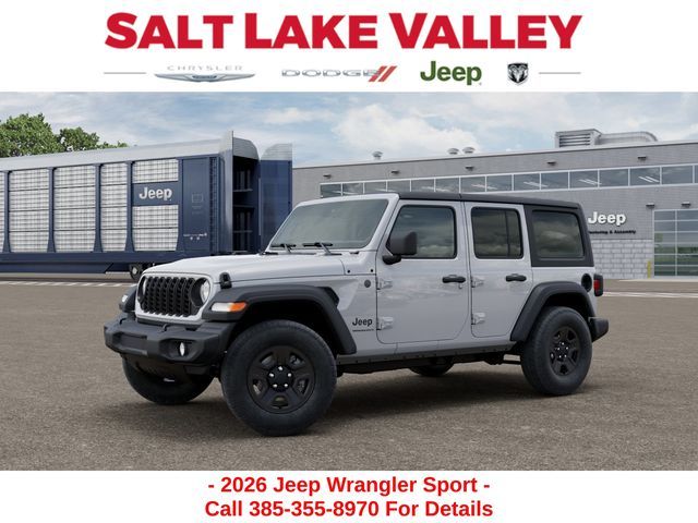 Adventure starts with the new Jeep Wrangler available now at Salt Lake Valley CDJR in Salt Lake City! Built for Utah’s canyons, trails, and highways alike, Jeep delivers freedom and capability in every mile. Discover why Wrangler drivers love to explore with confidence. Contact us at 801-484-8755 to schedule a time to see it today! 2026 Jeep Wrangler Sport Bright White Clearcoat 3.6L V6 24V VVT