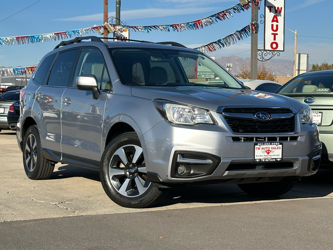 Hop into this sleek 2017 Silver Subaru Forester and get ready for exhilarating adventures ahead! Equipped with state-of-the-art safety features like ABS brakes, traction control, and multiple airbags, you can cruise with peace of mind knowing you're well-protected. The adjustable foot pedals and telescopic steering column ensure a customized, comfortable driving experience for you. With its stylish alloy wheels, rear spoiler, and power sunroof, you'll be turning heads wherever you go. Stay connected on the go with the AM/FM radio, voice-activated telephone, and telematics system. Let the front heated seats keep you cozy during chilly drives, while the separate driver/front passenger climate controls guarantee individual comfort preferences. Whether you're embarking on a road trip or simply commuting around town, the smooth handling and cruising capabilities of this Subaru will have you arriving in style. And the best part? You can review the car's history with the available Carfax report, ensuring transparency and confidence in your purchase decision. Don't miss the opportunity to make this Silver Subaru Forester your new favorite companion on the road! Visit TW Auto Sales online at www.twauto.com to see more pictures of this vehicle or call us at 801-262-5550 today to schedule your test drive.