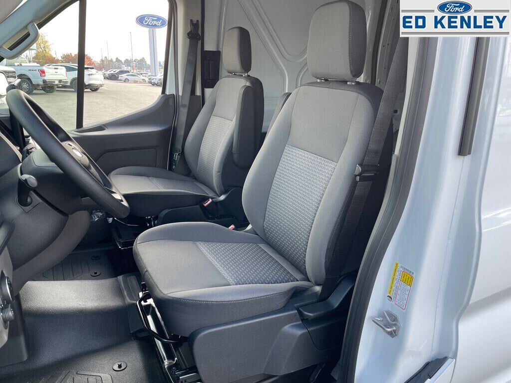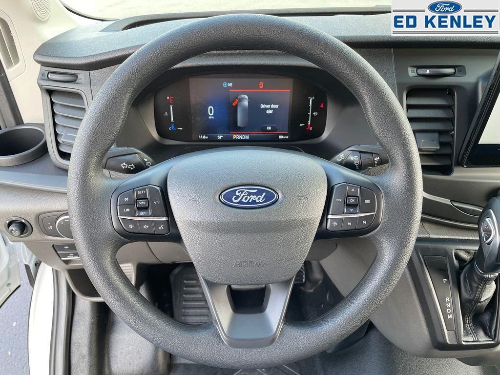 Order Code 101A: 16" Silver Steel Wheels with Black Hubcap; 10-Speed Automatic Transmission with OD and SelectShift; 3.73 Axle Ratio; 3.5L PFDi V6 Flex-Fuel Engine; 235/65R16C 121/119 R AS BSW Tires; 9,150 lbs GVWR; AM/FM Stereo,Dark Palazzo Gray Cloth Bucket Seats with Armrests,253-Degree Rear Door Opening,Front Overhead Shelf,Apple CarPlay/Android Auto smart device wireless mirroring,Pre-Collision Assist with Pedestrian Detection,FordPass Connect 5G mobile hotspot internet access,Rear mounted camera,Lane-Keeping System,Brake assist system,Cruise Control w/Adjustable Speed Limiting Device (ASLD) cruise control with steering wheel mounted controls,Connected Navigation integrated navigation system with voice activation,Primary monitor touchscreen,3.5L V-6 port/direct injection, DOHC, variable valve control, regular unleaded, engine with 275HP,3.5L V-6 DOHC,Voice Assistant - Ford Connectivity Package (1-year included) built-in virtual assistant,PCA with AEB and Intersection Assist forward collision mitigation with left turn assist,Driver Alert,Front windshield solar coating,Push-button,Automatic brake hold,Wireless audio streaming,Smart key with push button start,Auto High Beam auto high-beam headlights,SecuriLock immobilizer,Real-time traffic,Bluetooth handsfree wireless device connectivity,SYNC 4 external memory control,Ford Co-Pilot360 w/Side Wind Stabilization electronic stability control system with anti-roll,Hill start assist,Front and rear parking sensors,3 12V power outlets,Post Collision Braking automatic post-collision braking system,Real-time weather,911 Assist emergency SOS system via mobile device,Ford App mobile app access,Gauge cluster display size: 8.00,Manual tilting steering wheel,Manual telescopic steering wheel,Capless fuel filler,Wheel hub covers,16 x 6.5-inch front and rear argent steel wheels,Over the air updates,LT235/65RR16 AS BSW 720 RPM front and rear tires,Cloth front seat upholstery,6 airbags,Driver front impact airbag,Seat mounted side impact driver airbag,Safety Canopy System curtain first-row overhead airbags,Cancellable front passenger air bag,Seat mounted side impact front passenger airbag,Airbag occupancy sensor,Auto-locking doors,10-speed automatic
