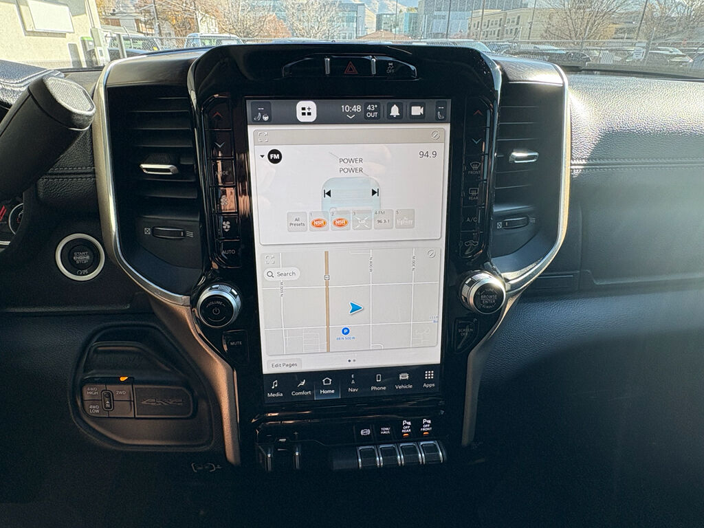Laramie Level 1 Equipment Group: Google Android Auto; SiriusXM Radio Service; Blind Spot and Cross Path Detection; Power Adjustable Pedals with Memory; For Details. Visit DriveUconnect.com; For More Info. Call 800-643-2112; Integrated Voice Command with Bluetooth; 12" Touchscreen Display; Auto Power-Folding Mirrors; Front LED Fog Lamps; Mirror Running Lights; Alexa Built-In; Apple CarPlay; Power Adjustable Convex Aux Mirrors; Forward and Reverse Utility Lights; Disassociated Touchscreen Display; Remote Tailgate Release; 2nd Row in Floor Storage Bins; Rear Window Defroster; Rain Sensitive Windshield Wipers; Rear Power Sliding Window; Connectivity - US/Canada; GPS Navigation; 4G LTE Wi-Fi Hot Spot; GPS Antenna Input; Exterior Mirrors with Heating Element; Auto Dim Exterior Mirror; SiriusXM with 360L; Global Telematics Box Module; Connected Travel and Traffic Services; LED Reflector Headlamps; Foam Bottle Insert (door Trim Panel); Off-Road Information Pages; Selectable Tire Fill Alert; Trailer Tow Pages; HD Radio; Uconnect 5 Navigation with 12.0" Display Radio; Power Heated Fold Telescopic Mirrors with Memory; Exterior Mirrors with Supplemental Signals; Exterior Mirrors Courtesy Lamps; Auto High Beam Headlamp Control; Chrome Exterior Mirrors; Exterior Mirrors with Memory; Power Adjust Mirrors; Power Telescoping Mirrors; Radio/driver Seat/mirrors/pedals Memory; Auto Dim Exterior Passenger Mirror; Auto Adjust in Reverse Exterior Mirrors; ParkSense Front/rear Park Assist System. Quick Order Package 2HH Laramie. Protection Group: Tow Hooks; Transfer Case Skid Plate Shield. Heavy Duty Snow Plow Prep Group: Transfer Case Skid Plate Shield; 220 Amp Alternator. Chrome Bumper Package: Bright Rear Bumper; Bright Front Bumper. MOPAR Spray in Bedliner. Blind Spot and Cross Path Detection. Billet Silver Metallic CC. Tow Hooks. Equipment listed is based on original vehicle build and subject to change. Please confirm the accuracy of the included equipment by calling the dealer prior to purchase.
