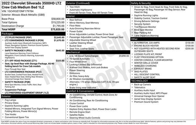 2022 Chevrolet Silverado 3500HD LTZ Mosaic Black Metallic 4WD 10-Speed Automatic Duramax 6.6L V8 Turbodiesel