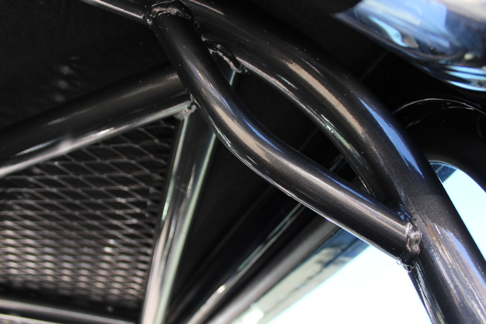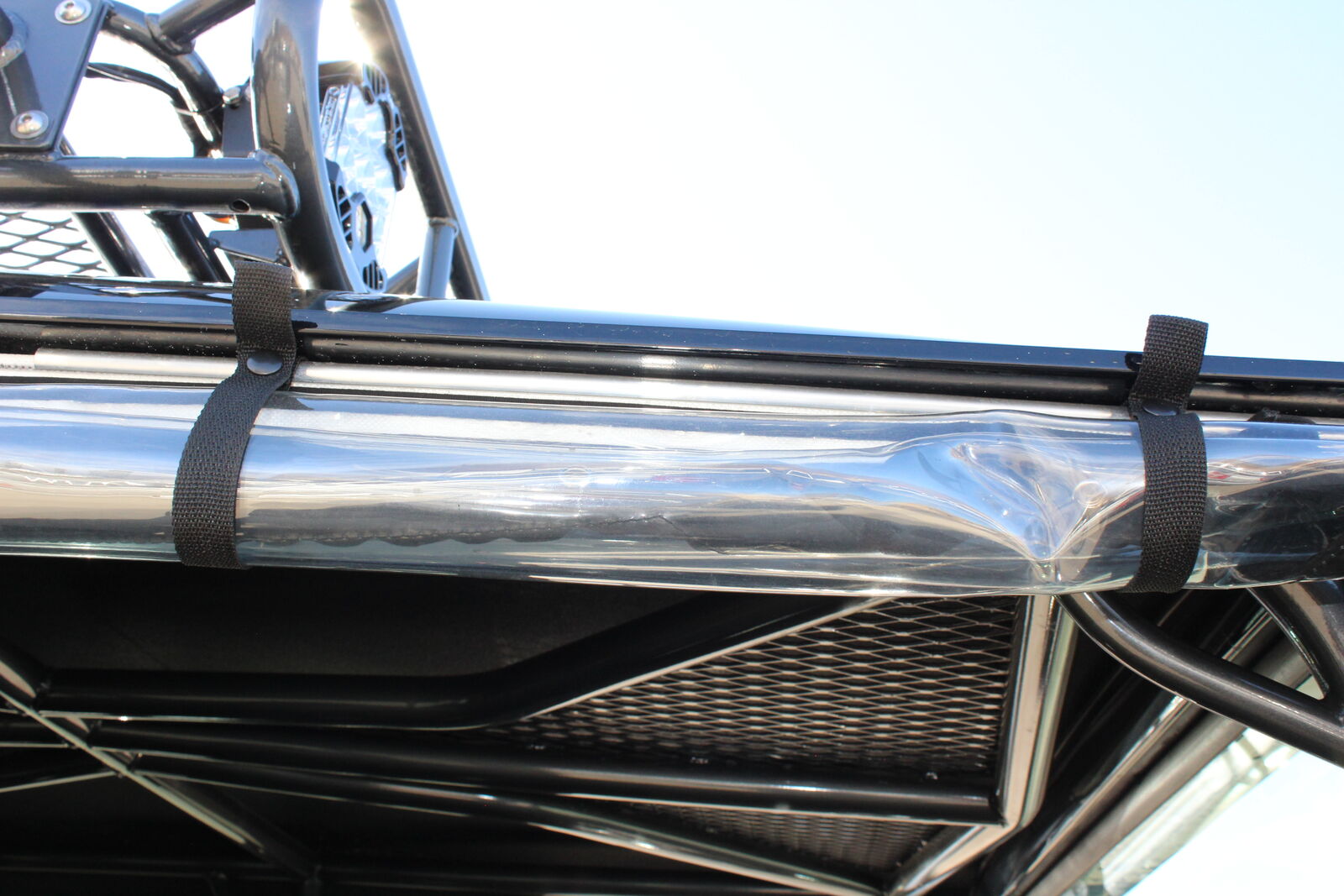 **Protection:**Integrated rock rails and a custom powder-coated roll cage for maximum safety.