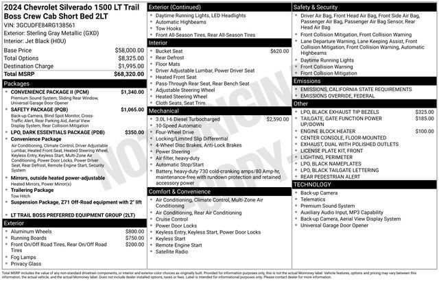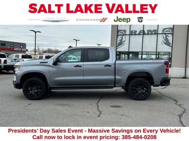 Get ready to hit the road in this Chevrolet Silverado 1500, a standout choice for drivers looking for reliability, performance, and style! This impressive vehicle is packed with premium features designed to make every drive more enjoyable. Plus, you’ll enjoy a $1,000 finance savings, already included in the sale price, when you finance through one of our trusted lending partners. Whether you’re searching for used cars in Salt Lake City, a dependable SUV, or a powerful truck, this Chevrolet Silverado 1500 delivers everything you need and more. Visit Salt Lake Valley Chrysler Dodge Jeep Ram today to test drive or explore our entire selection of quality pre-owned vehicles. Don’t wait - shop online at www.slvcdjr.com or call 801-484-8755 to learn more! This amazing vehicle comes loaded with options like Convenience Package (10-Way Power Driver Seat w/Lumbar, 120-Volt Bed Mounted Power Outlet, 120-Volt Interior Power Outlet, Dual Rear USB Ports (Charge Only), Dual-Zone Automatic Climate Control, Electric Rear-Window Defogger, Heated Driver & Front Outboard Passenger Seats, Heated Steering Wheel, Keyless Open & Start, Remote Vehicle Starter System, Theft Deterrent System (Unauthorized Entry), and Wrapped Steering Wheel), Convenience Package II (Hitch Guidance w/Hitch View, In-Vehicle Trailering System App, Integrated Trailer Brake Controller, Power Sliding Rear Window w/Rear Defogger, Premium Bose 7-Speaker Sound System, and Universal Home Remote), Dark Essentials Package (LPO) (Black Name Plates (LPO)), Preferred Equipment Group 2LT (12.3'' Multicolor Reconfigurable Digital Display, 6-Speaker Audio System, All-Weather Floor Liner (LPO) (AAK), Auto-Locking Rear Differential, Bluetooth® For Phone, Chevrolet Connected Access Capable, Color-Keyed Carpeting Floor Covering, Deep-Tinted Glass, Electrical Steering Column Lock, Electronic Cruise Control, EZ Lift Power Lock & Release Tailgate, Front LED Fog Lamps, HD Rear Vision Camera, Heated Power-Adjustable Outside Mirrors, High Gloss Black Mirror Caps, Inside Rear-View Mirror w/Tilt, LED Cargo Area Lighting, OnStar & Chevrolet Connected Services Capable, Performance Red Recovery Hooks, Power Front Windows w/Driver Express Up/Down, Power Front Windows w/Passenger Express Down, Power Rear Windows w/Express Down, Rear 60/40 Folding Bench Seat (Folds Up), SiriusXM w/360L, Standard Tailgate, Steering Wheel Audio Controls, and Wi-Fi Hot Spot Capable), Safety Package (HD Surround Vision, Perimeter Lighting, Rear Cross Traffic Braking, Rear Pedestrian Alert, Trailer Camera Provisions, Trailer Side Blind Zone Alert, and Ultrasonic Front & Rear Park Assist), Suspension Package (Heavy-Duty Air Filter and Hill Descent Control), Trailering Package (Hitch Guidance), 2 USB Data Ports, 220 Amp Alternator, 4-Wheel Disc Brakes, 40/20/40 Front Split-Bench Seat, 6 Speakers, ABS brakes, Air Conditioning, Alloy wheels, AM/FM radio: SiriusXM with 360L, Auto High-beam Headlights, Automatic Emergency Braking, Automatic temperature control, Black Exhaust Tip Bezels (LPO), Black Tailgate CHEVROLET Lettering (LPO), Brake assist, Cloth Seat Trim, Compass, Delay-off headlights, Driver door bin, Driver vanity mirror, Dual Exhaust w/Polished Outlets, Dual front impact airbags, Dual front side impact airbags, Electronic Stability Control, Electronic Transmission Range Selector Shifter, Engine Block Heater, Floor Mounted Center Console, Following Distance Indicator, Forward Collision Alert, Front anti-roll bar, Front Bucket Seats, Front Center Armrest w/Storage, Front dual zone A/C, Front fog lights, Front License Plate Kit, Front Pedestrian Braking, Front reading lights, Front wheel independent suspension, Fully automatic headlights, Heated door mirrors, Heated front seats, Heated steering wheel, Illuminated entry, IntelliBeam Automatic High Beam On/Off, Lane Keep Assist w/Lane Departure Warning, Low tire pressure warning, Occupant sensing airbag, Off-Road High Clearance Steps (LPO), Outside temperature display,