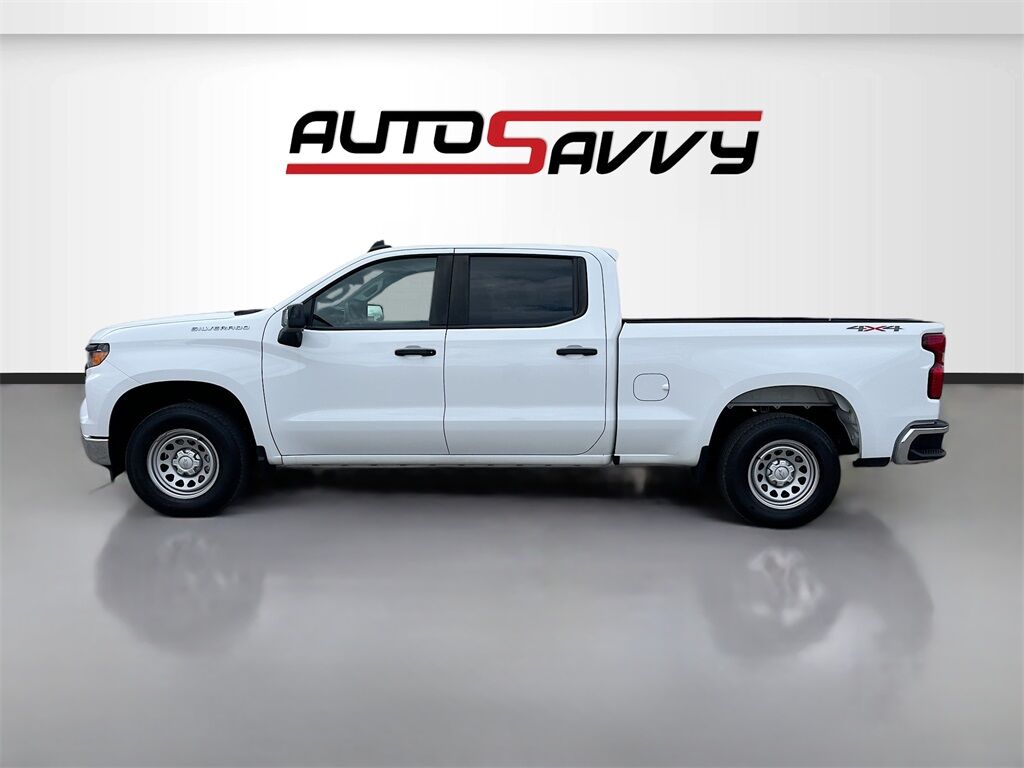 Experience the power and versatility of the 2024 Chevrolet Silverado 1500 4WD Crew Cab Standard Bed WT, now available at AutoSavvy Las Vegas. This rugged truck, finished in a clean Summit White, is driven by a robust EcoTec3 5.3L V-8 engine, producing an impressive 355 horsepower. With just 14,967 miles on the odometer, this Silverado is ready to conquer any task with reliability and longevity. Enjoy the smooth performance of a 10-speed automatic transmission and a host of standard features including a 120-volt bed-mounted power outlet, Bluetooth connectivity, and the Chevrolet Infotainment 3 system with a 7-inch touchscreen. Safety is a priority with advanced features such as Lane Keep Assist, Blind Spot Monitoring, and Rear Cross Traffic Alert, providing peace of mind on every journey. The current status of the title is branded, ensuring transparency and confidence in your purchase. This Silverado has been thoroughly inspected to meet high standards of performance and reliability, proudly earning the Savvy Certified label. Benefit from our 4-month/4,500 Mile Warranty, safeguarding your investment and ensuring peace of mind. Visit AutoSavvy Las Vegas today to explore this exceptional truck that seamlessly combines power, technology, and comfort. Whether you're tackling tough jobs or embarking on an adventure, the 2024 Chevrolet Silverado 1500 is engineered to deliver a superior driving experience. Don't miss the opportunity to own this feature-rich and capable vehicle, perfect for those who demand excellence in their truck.