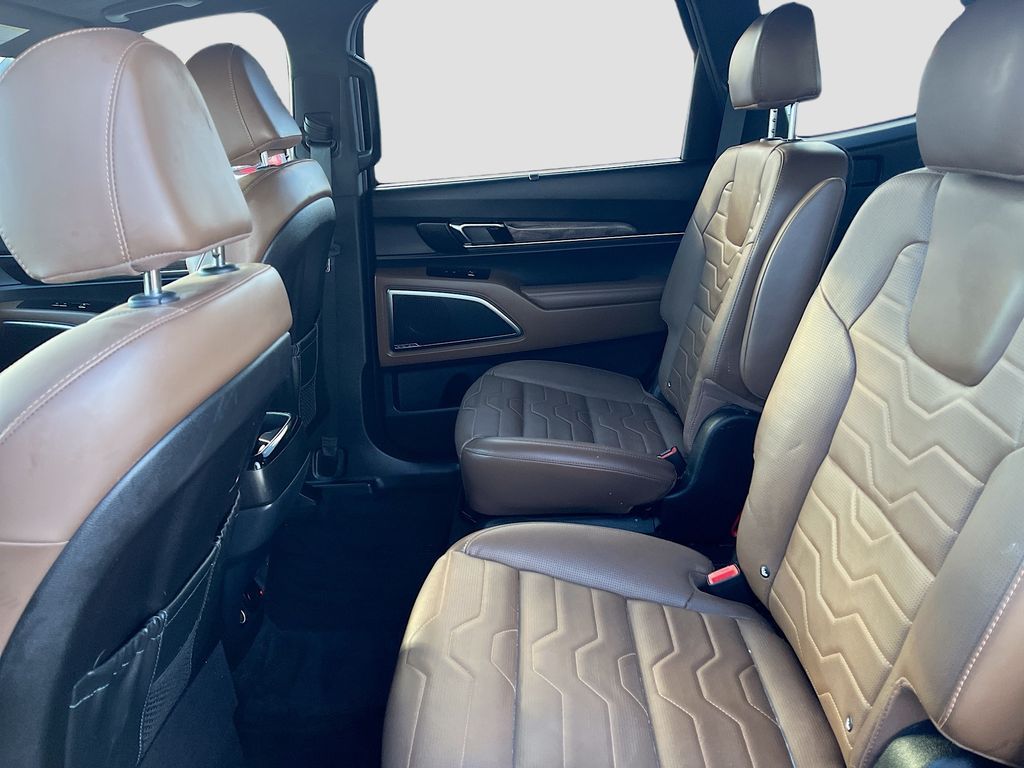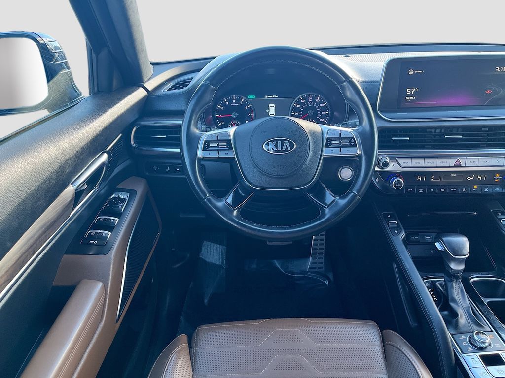 Discover the 2021 Kia Telluride SX AWD at AutoSavvy Colorado Springs, a top-tier SUV that masterfully combines power, luxury, and state-of-the-art technology. This eye-catching Black Copper vehicle has only 62,439 miles and is driven by a robust LAMBDA II 3.8L V-6 engine, delivering 291 horsepower. Its all-wheel-drive capability and 8-speed automatic transmission ensure a smooth ride, achieving up to 24 MPG on the highway. Inside, bask in the opulence of Nappa leather seats, a spacious interior with third-row seating, and premium features like a panoramic sunroof, heated and ventilated seats, and a head-up display. Stay connected with Apple CarPlay, Android Auto, and a Harman/Kardon sound system, making every drive a pleasure. The current status of the title is branded, but rest assured, this Savvy Certified Telluride has undergone a meticulous inspection to meet high safety and reliability standards. Benefit from our comprehensive 4-month/4,500-mile warranty, providing peace of mind with your purchase. Equipped with advanced safety features such as adaptive cruise control, blind spot monitoring, and lane departure warning, this vehicle prioritizes your safety on every journey. Visit AutoSavvy Colorado Springs today to explore this exceptional Kia Telluride SX AWD a vehicle that stands out with its impressive design, modern technology, and superior comfort, ready to enhance your driving adventures.