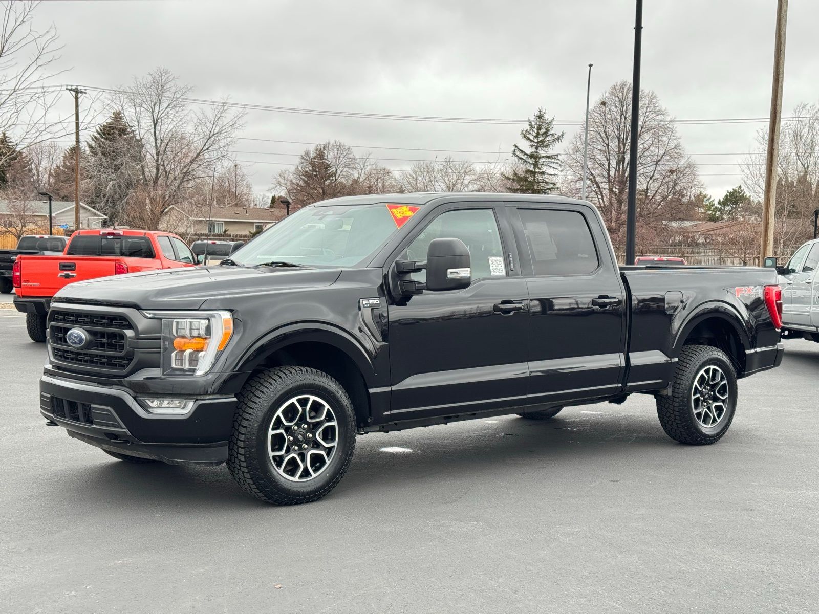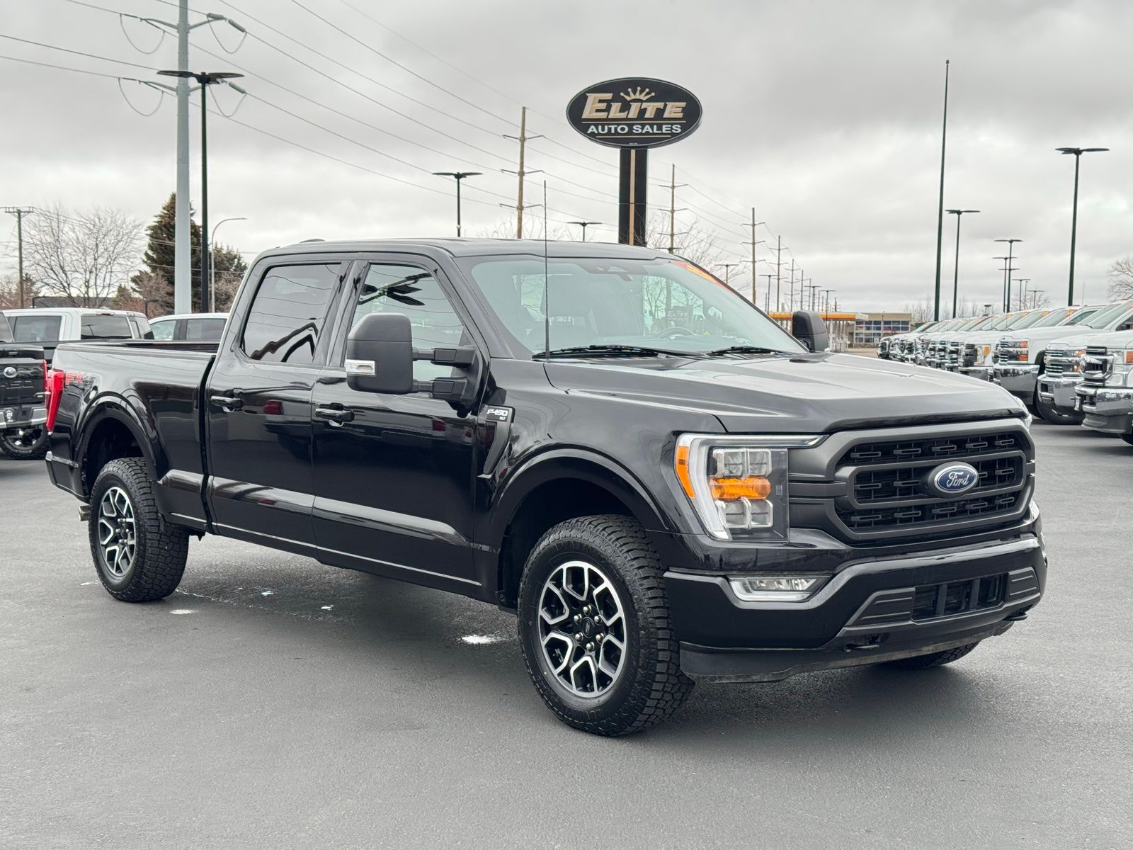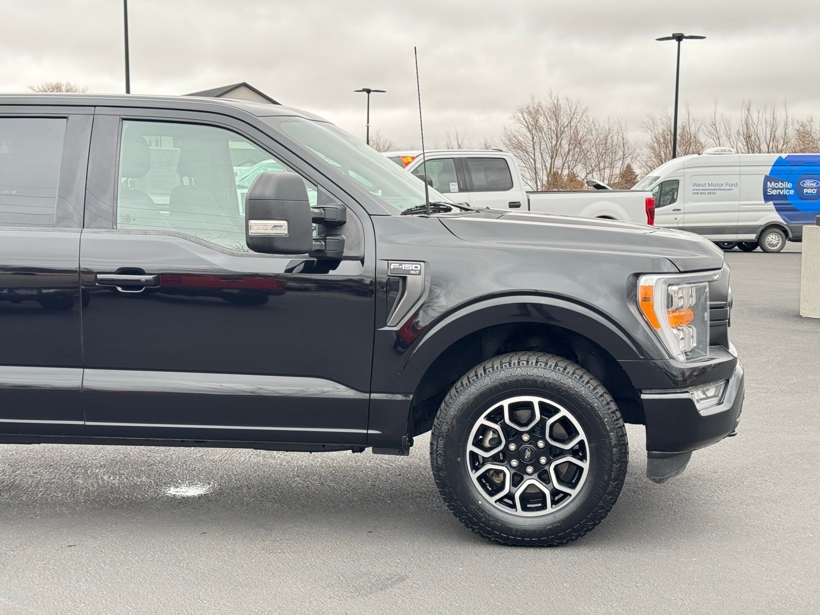 Black 2022 Ford F-150 XLT 4D SuperCrew 2022 4WD, 10-Way Power Driver & Passenger Seats, 2-Bar Style Grille w/Chrome 2 Minor Bars, 4x4 FX4 Off-Road Bodyside Decal, 8'' Productivity Screen in Instrument Cluster, ABS brakes, Alloy wheels, Auto-Dimming Rear-View Mirror, Bright Polished Step Bars, Chrome Door & Tailgate Handles w/Body-Color Bezel, Chrome Single-Tip Exhaust, Class IV Trailer Hitch Receiver, Compass, Dual Zone Electronic Automatic Temperature Control, Electronic Locking w/3.31 Axle Ratio, Electronic Stability Control, Equipment Group 302A High, FX4 Off-Road Package, Heated door mirrors, Heated Front Seats, Hill Descent Control, Illuminated entry, Integrated Trailer Brake Controller, Intelligent Access w/Push Button Start, Leather-Wrapped Steering Wheel, LED Reflector Headlamps, LED Sideview Mirror Spotlights, Low tire pressure warning, Monotube Rear Shocks, Off-Road Tuned Front Shock Absorbers, Onboard 400W Outlet, Power Glass Heated Sideview Mirrors, Pro Trailer Backup Assist, Radio: AM/FM SiriusXM w/360L, Rear Under-Seat Storage, Remote keyless entry, Remote Start System w/Remote Tailgate Release, Rock Crawl Mode, SecuriCode Drivers Side Keyless-Entry Keypad, SYNC 4 w/Enhanced Voice Recognition, Traction control, Trailer Tow Package, Tray Style Floor Liner (47W), Wheels: 18'' Chrome-Like PVD, XLT Chrome Appearance Package, Zone Lighting. XLT 10-Speed Automatic Ford 3.5L V6 EcoBoost F-150 4WD