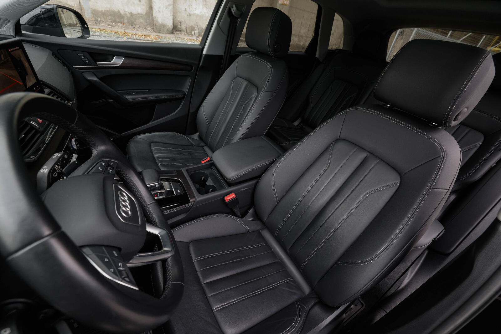 Clean title Audi Q5 quattro (AWD) in Mythos Black metallic with Black leather interior. 2.0 TFSI I4 engine and 7-speed S tronic automatic transmission produces 261 hp and 273 lb-ft torque. Gas mileage: 22 city, 29 highway. New car factory warranty until 03/2027 or 50k miles, whichever comes first.