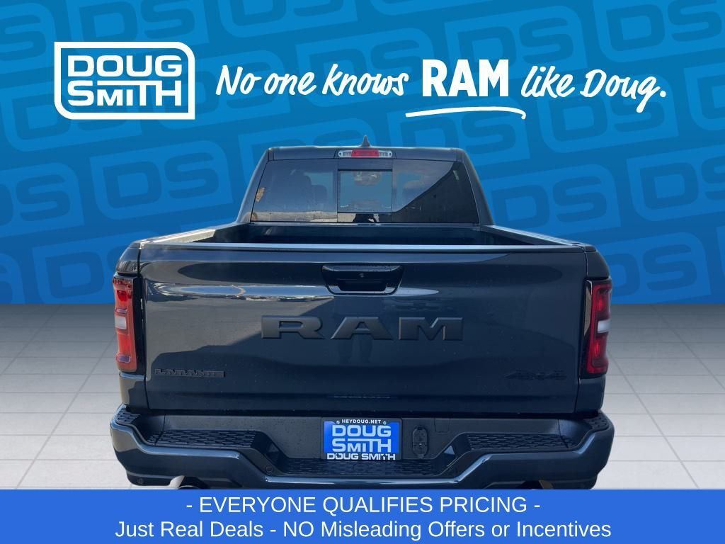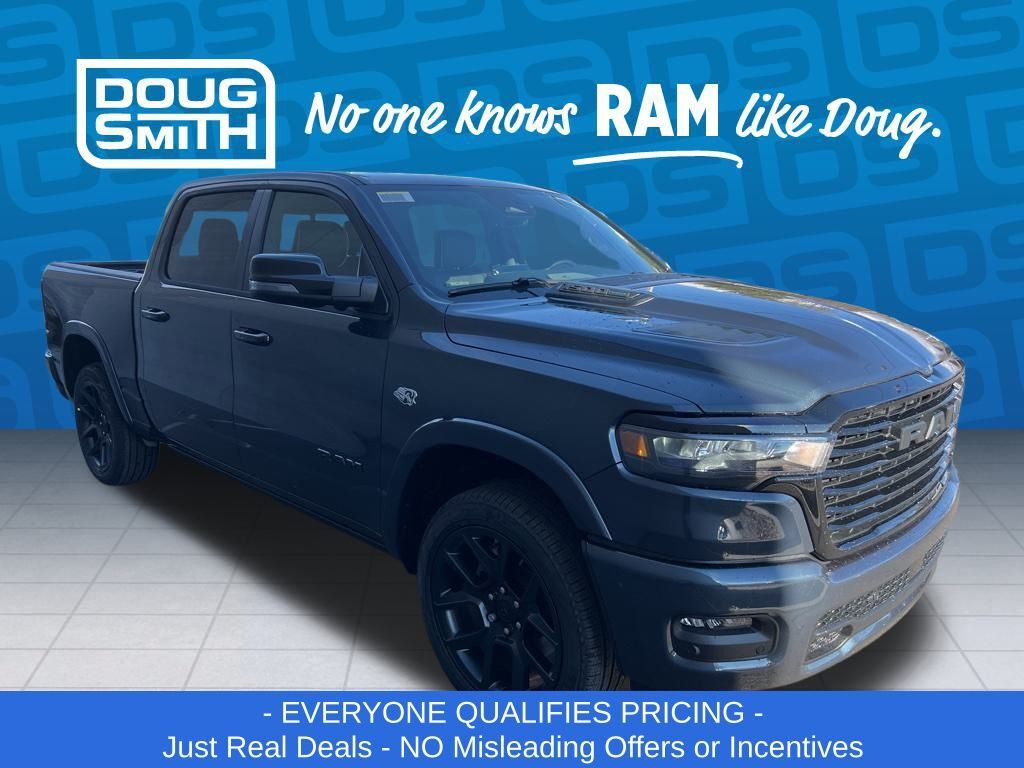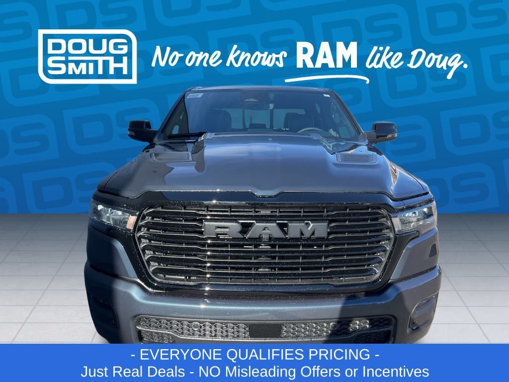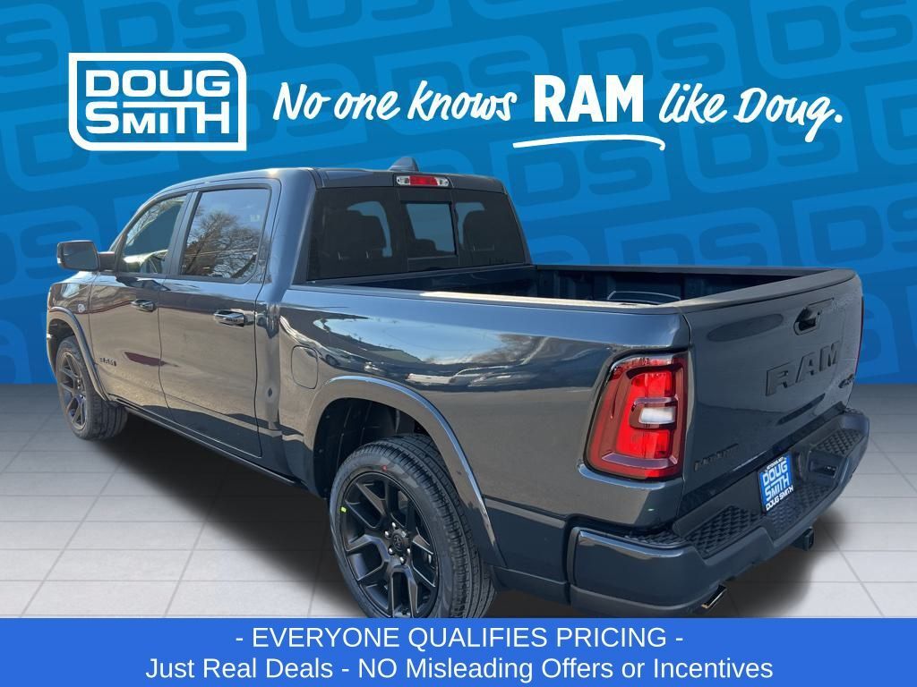 Forged Blue Metallic 2026 Ram 1500 Laramie 4WD 8-Speed Automatic HEMI 5.7L V8 Multi Displacement VVT eTorque Price includes: $1000 - 2026 National Bonus Cash . Exp. 03/02/2026 $1000 - 2026 West BC SFS Bonus Cash . Exp. 03/02/2026 $2000 - 2026 National Select Inventory Bonus Cash. Exp. 03/02/2026 $3500 - 2026 National Retail Consumer Cash . Exp. 03/02/2026 - Advertised Price reflects a $1,500 Financing Discount. To qualify for this discount, customer must secure credit approval and finance with a dealership lender. Cash purchases or outside financing will void the discount, increasing the final price by $1,500. Exp. 02/28/2026 - See Doug Smith CDJR for full details. - Sale Price Includes: $1,500 Trade-In Allowance Incentive Program for customers that trade in a 2015 or newer passenger vehicle with 100,000 miles or less. - Offer Exp. 02/28/2026 - See Doug Smith CDJR for full details.